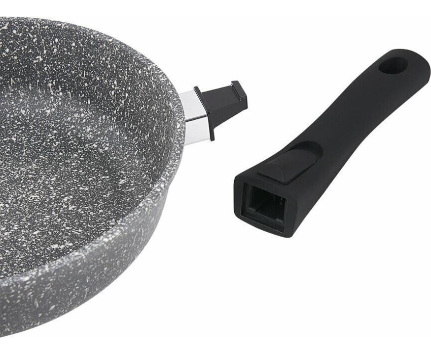Сковорода 28 см Мрамор. Материал: пищевой литой алюминий. Антипригарное мраморное покрытие. Подходит для всех тип плит, в том числе индукционных. Имеет съемную ручку, легко чистится. Можно мыть в посудомоечной машине. Без крышки.
