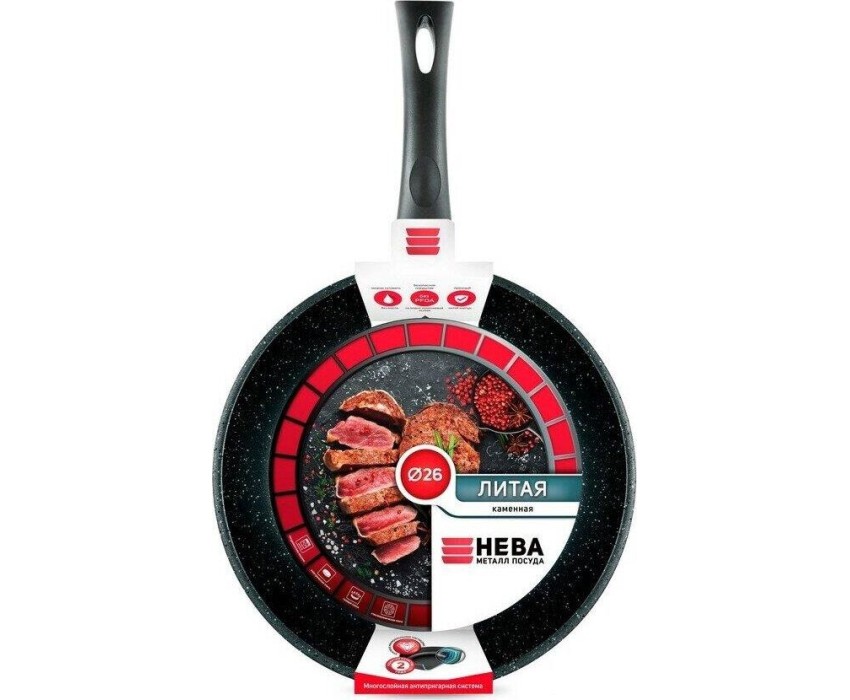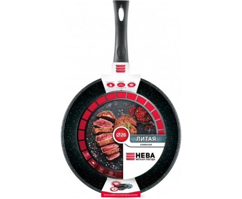 Сковорода НЕВА МЕТАЛЛ ПОСУДА 18126 а/пр литая 26см Черный гранит