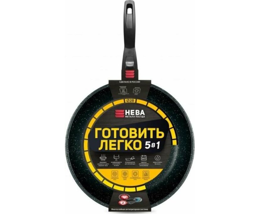 Сковорода НЕВА МЕТАЛЛ ПОСУДА GL2028 а/пр литая 28см съемн/руч Готовить легко stone