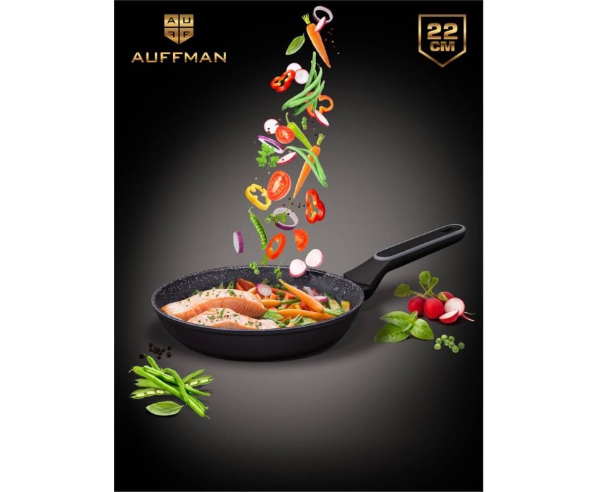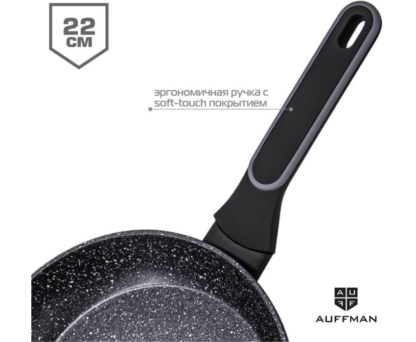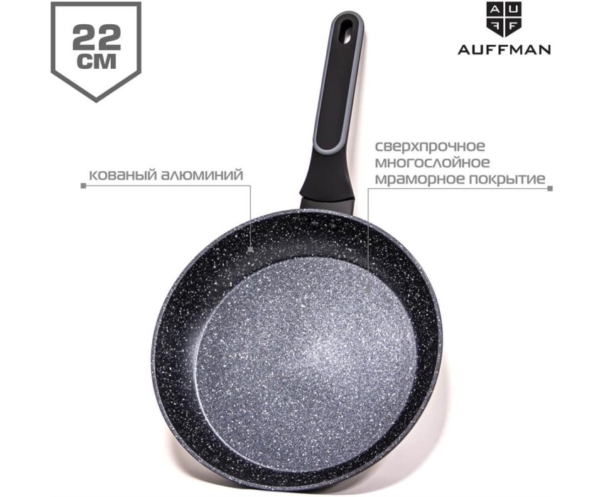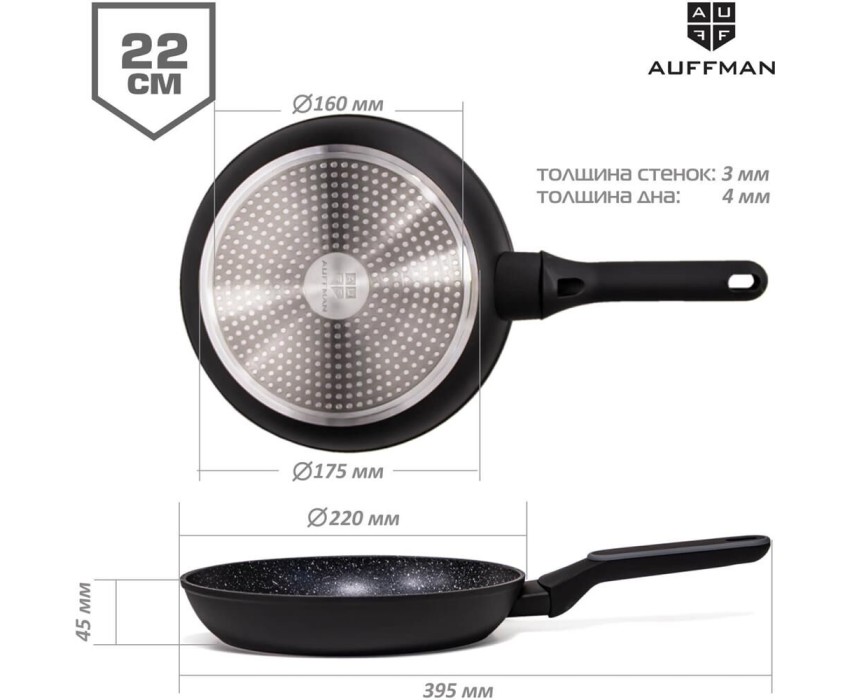 Сковорода. Кованый алюминий Толщина края и дна 4мм, толщина изделия 3мм Индукционное дно Ручка с софт-тач покрытием Внутри антипригарное покрытие с белыми точками, 2 слоя. Снаружи высокотемпературное покрытие
