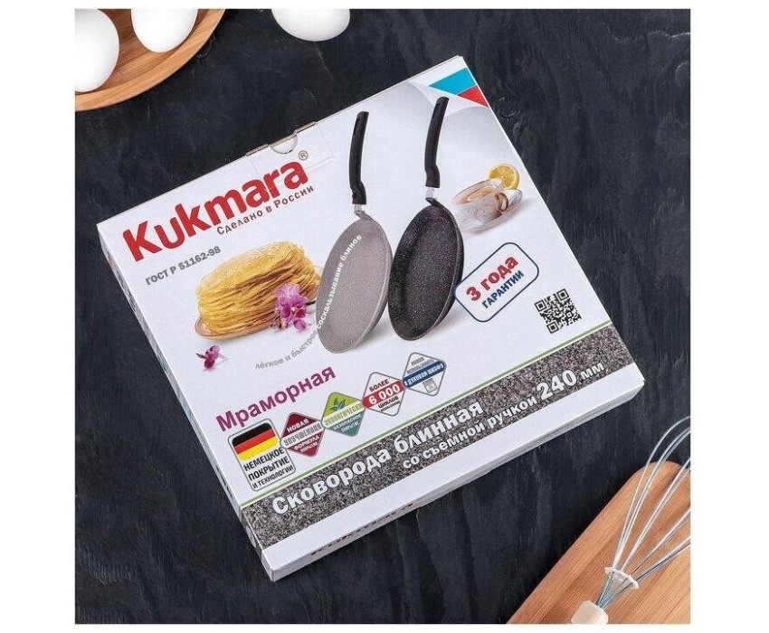 Сковорода KUKMARA Сбмс240-1а а/пр литая блинная 24см съемн/руч Светлый мрамор