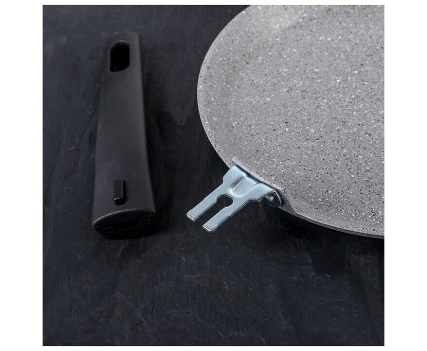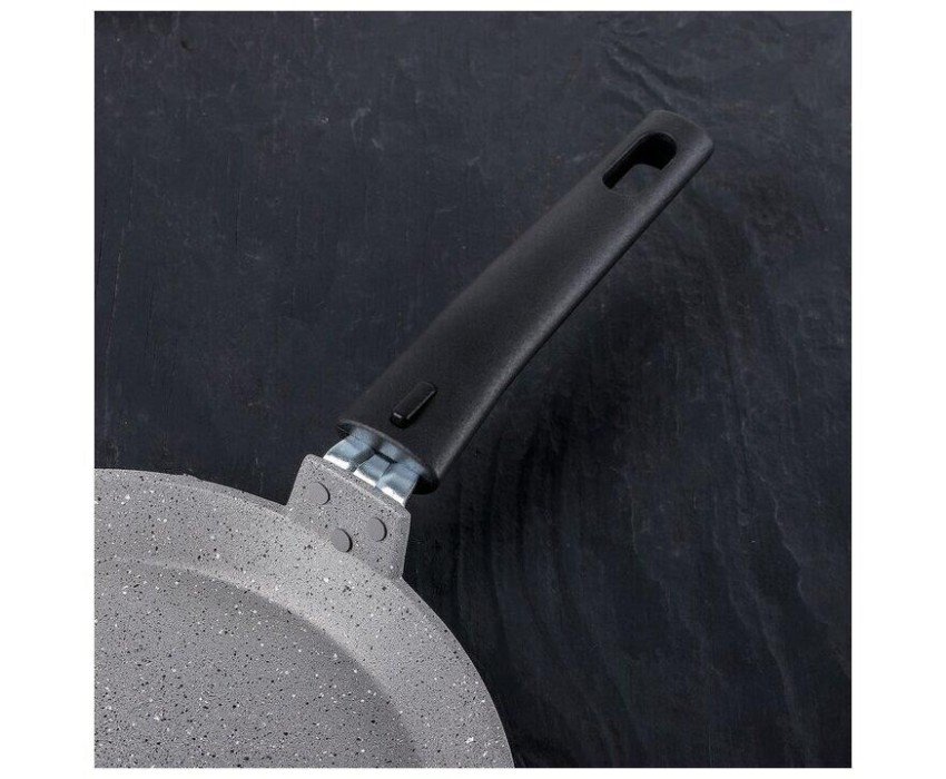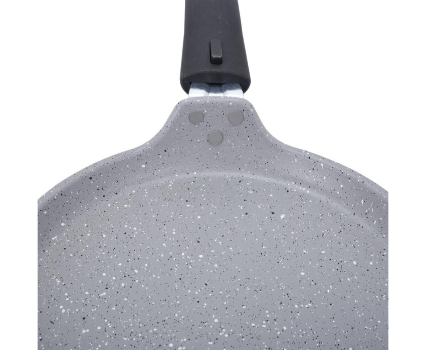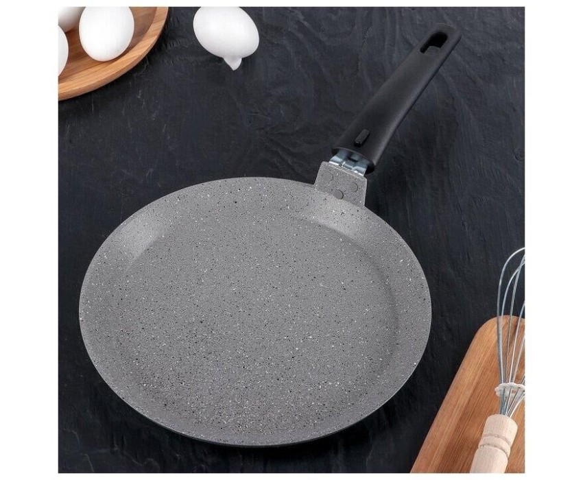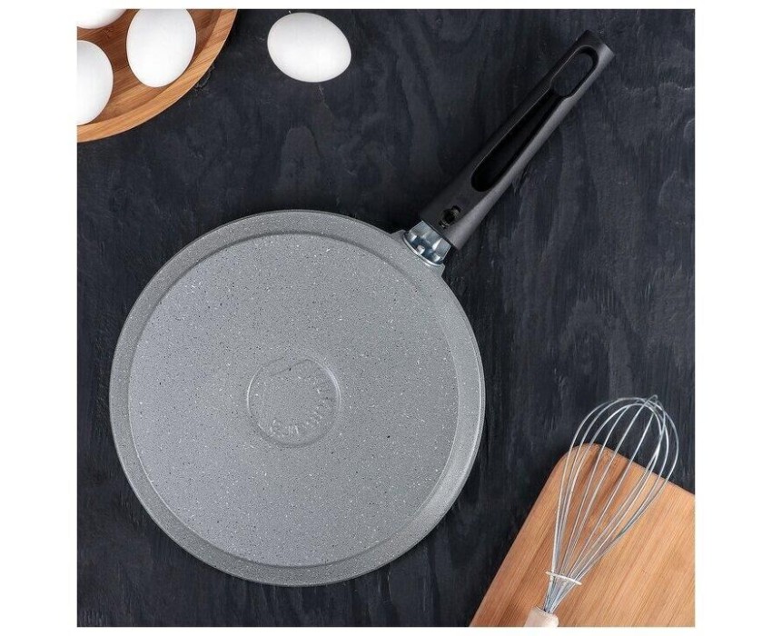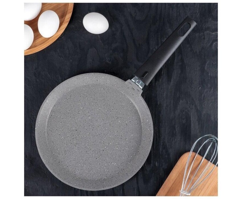 Красивая и удобная посуда линии Мраморная спокойных тонов создаст уютную атмосферу на кухне. Немаловажным является и широкий ассортимент, благодаря чему в рамках единой коллекции можно собрать свой собственный набор посуды. Блинная сковорода - настоящая находка для каждой хозяйки: подойдет не только для жарки блинов, но и для приготовления яичницы, оладий и других вкусных блюд.