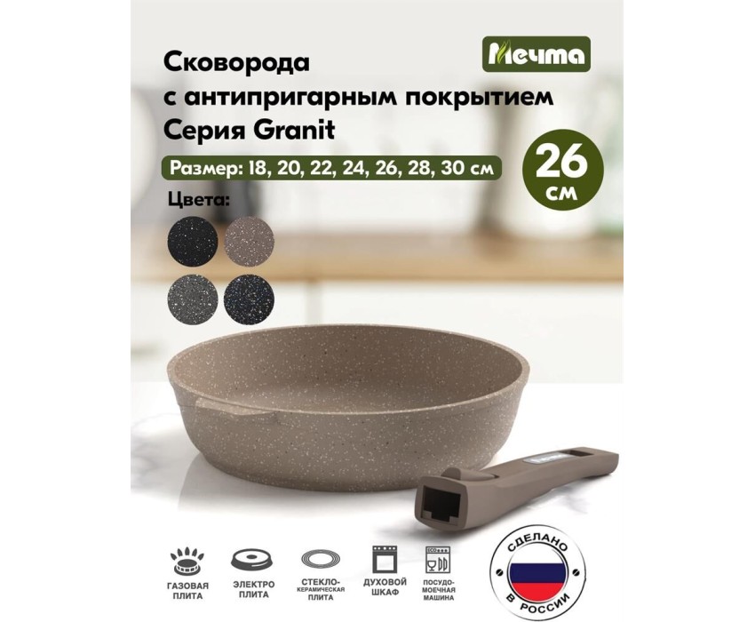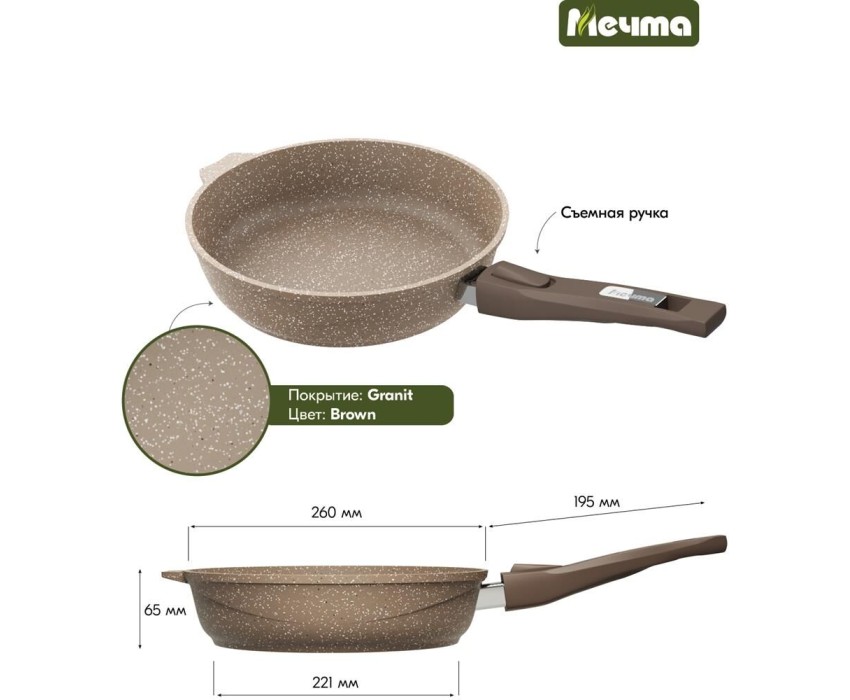 Сковорода МЕЧТА 026806 со съемной ручкой "Гранит brown" 26см