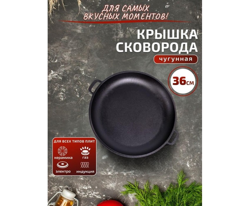 РОССИЯ 0036-4 Крышка-cковорода чугунная, 36 см, с двумя ручками