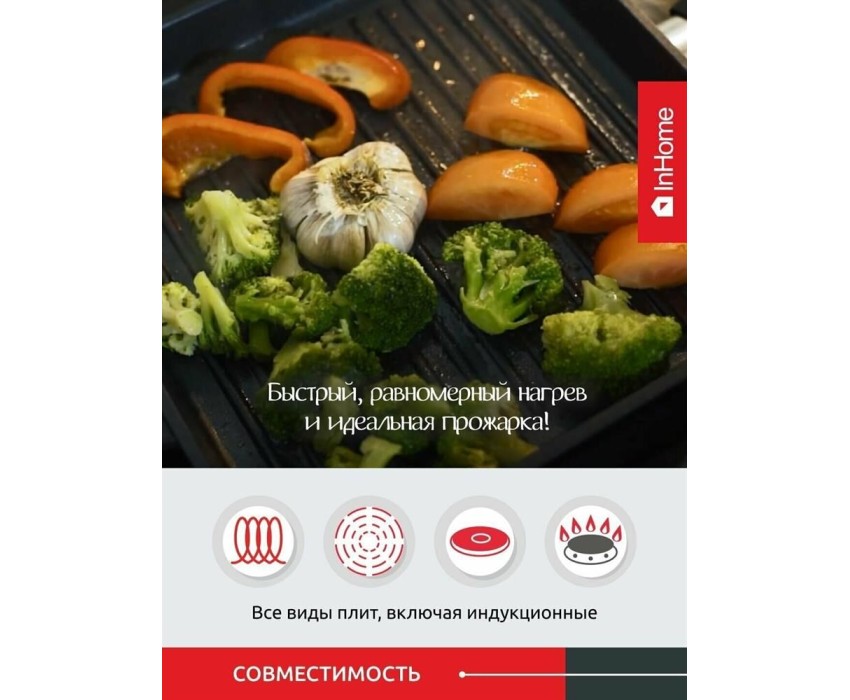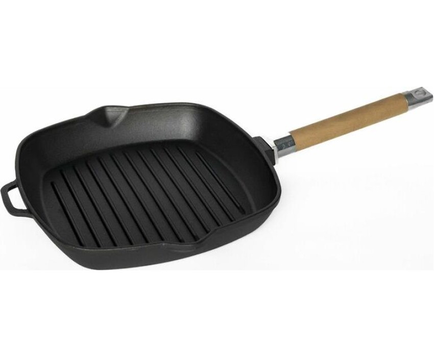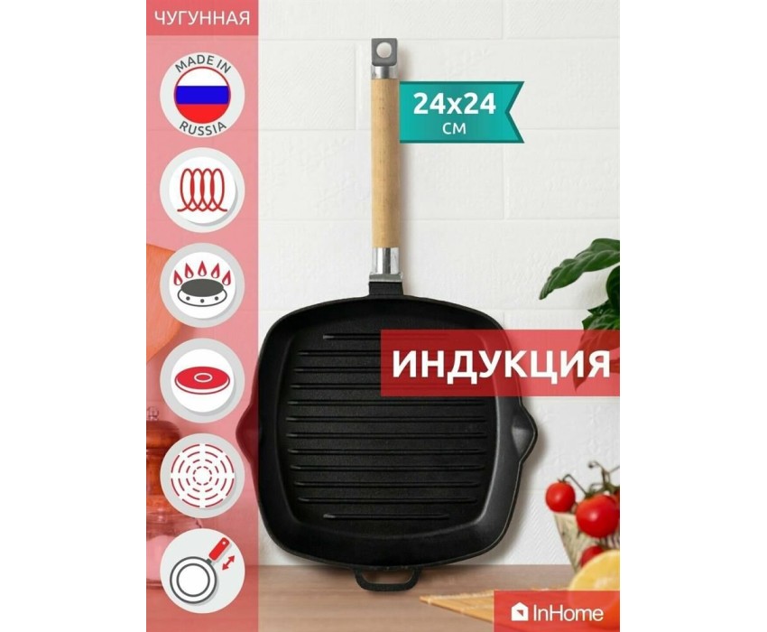 Чугунная сковорода гриль литая, с высокими бортиками Чугунная сковорода гриль - идеальный выбор для тех, кто любит готовить с настоящим аппетитом. Используйте эту сковороду гриль для приготовления вкусных блюд на открытом воздухе или внутри дома. С ее помощью вы можете готовить все, от стейков до овощей и морепродуктов, которые будут иметь идеальный вкус и текстуру. Ищете идеальную сковороду для индукционной плиты? Попробуйте чугунную сковороду гриль!
