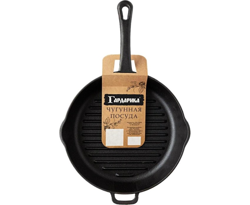 Сковорода-гриль Гардарика чугунная, литая ручка, 28см. Посуду можно использовать в духовом шкафу или просто компактно ее хранить. Посуду можно использовать в духовке. Материал посуды - чугун. Как показывает опыт, нет лучшего материала для изготовления посуды, нежели чугун. Во-первых, чугун считается экологически безопасным, чистым материалом. Если, конечно, поверх чугунной посуды нет какого-либо покрытия. Во-вторых, он может быстро нагреваться до высоких температур и держать в себе тепло долгое время.