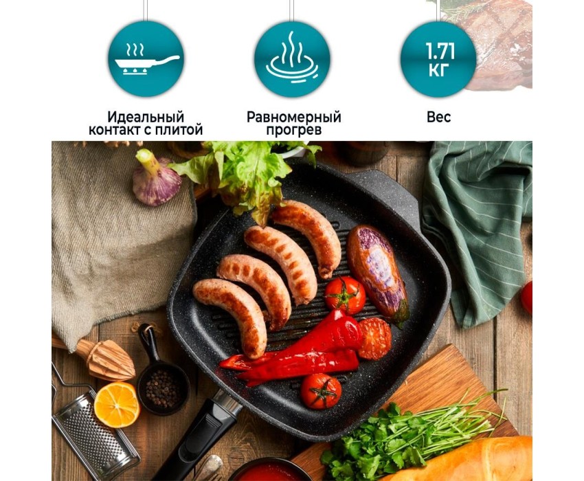 Сковорода НЕВА МЕТАЛЛ ПОСУДА Сковорода-гриль а/пр литая 28х28см съемн/руч Байкал ТМ НМП