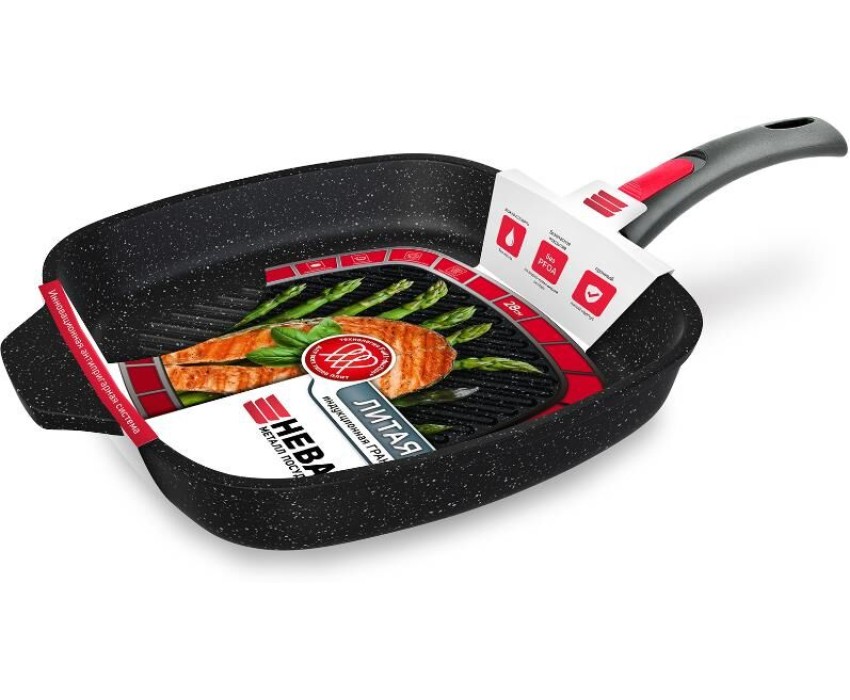 Сковорода НЕВА МЕТАЛЛ ПОСУДА Сковорода-гриль а/пр литая 28х28см съемн/руч индукция Гранит ТМ НМП