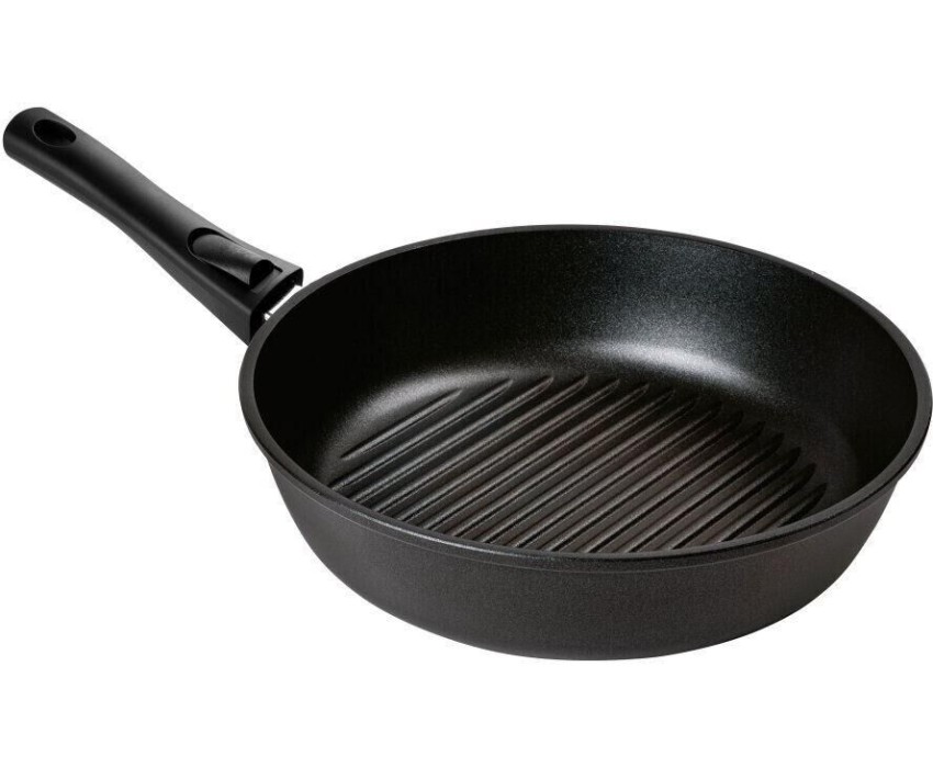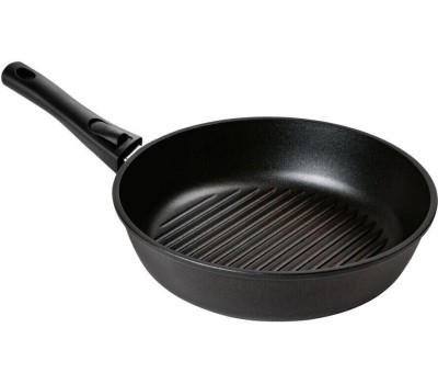 Литая алюминиевая сковорода-гриль с антипригарным покрытием производства подходит для газовых, электрических и стеклокерамических плит. Используется для жарки мяса, овощей, рыбы, морепродуктов практически без добавления масла. Сковорода-гриль серии «Класс
