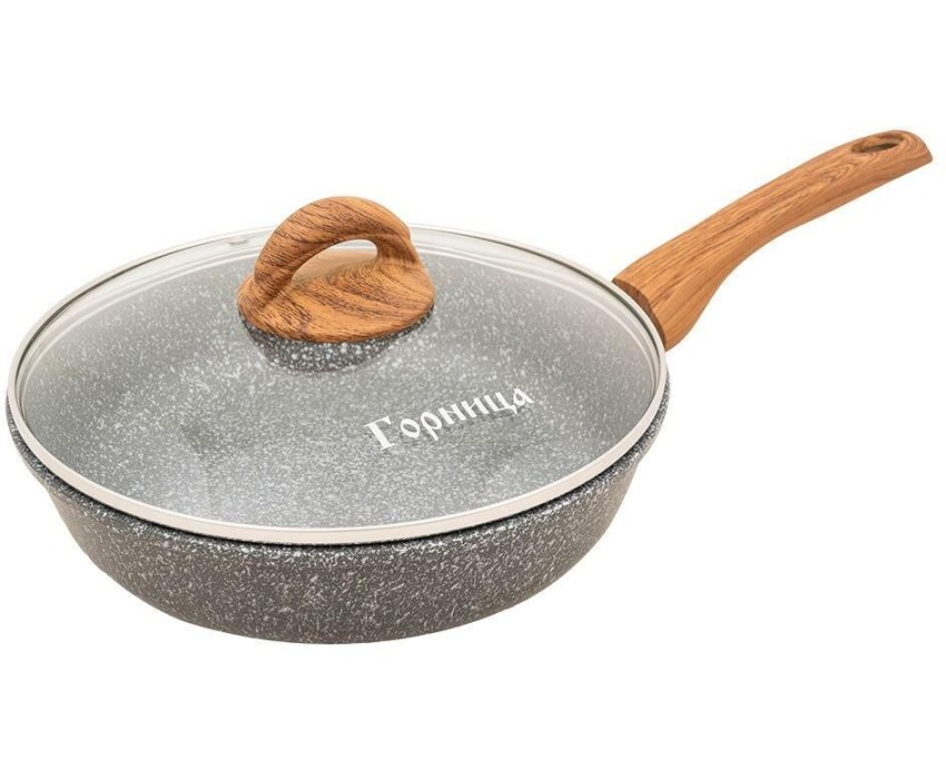 Литая алюминиевая сковорода с антипригарным покрытием подходит для газовых, электрических и стеклокерамических плит. Коллекция посуды с пятислойным антипригарным покрытием. Содержит частицы минеральных пород, что позволяет применять тупые металлические пр