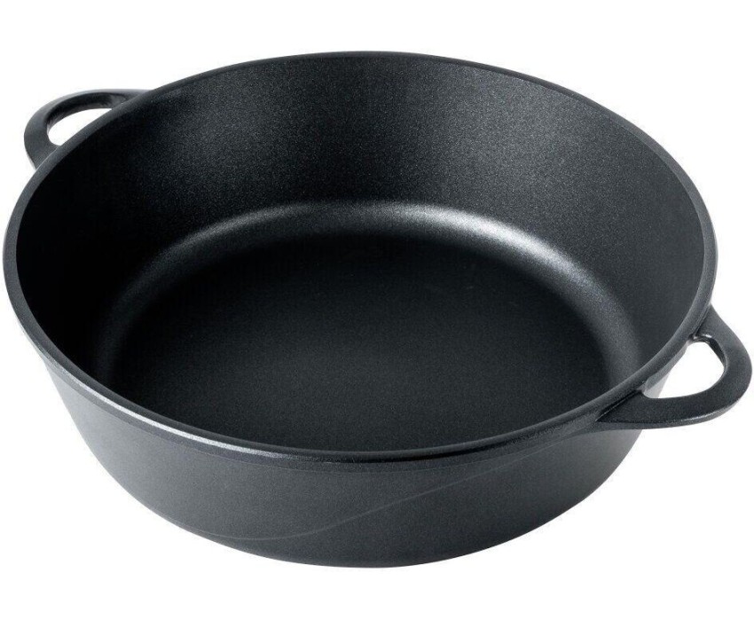 Литая алюминиевая жаровня с антипригарным покрытием подходит для газовых, электрических и стеклокерамических плит. Это разновидность сковороды с двумя ручками и широким дном. Жаровня имеет важное преимущество; в ней можно готовить не только на плите, но в