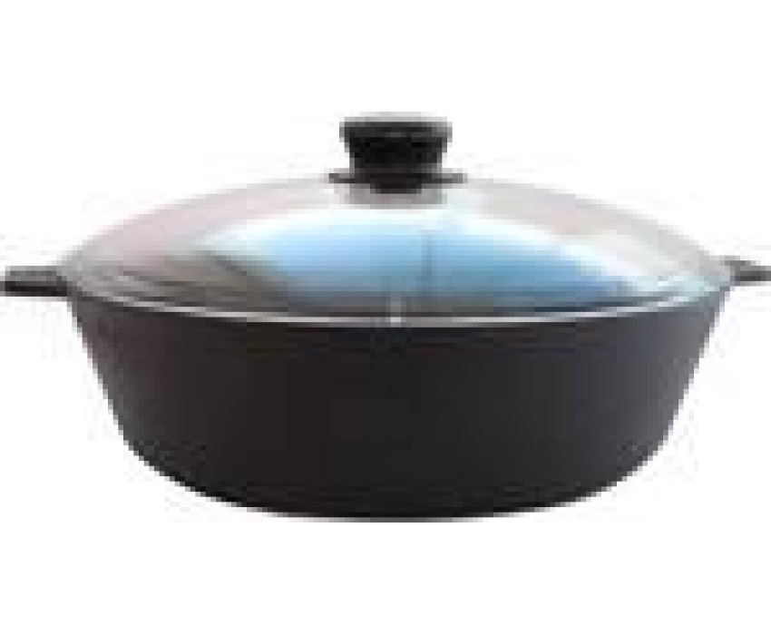 Камская посуда у8082 чугунная 280х80 с двумя ушками со стеклянной крышкой