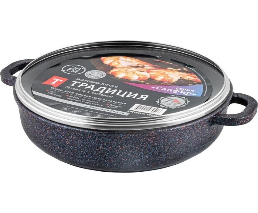 Жаровня ТРАДИЦИЯ ТС9263 а/пр литая 26см стекл/кр Сапфир