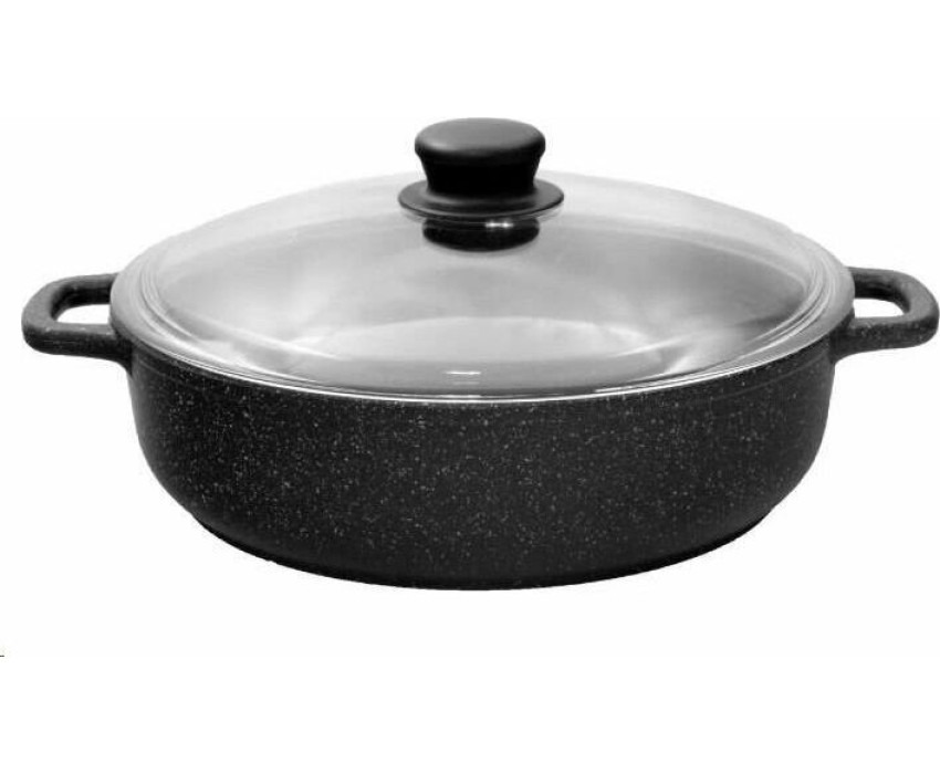 Жаровня а/пр литая 26см стекл/кр Сапфир ТМ Традиция, мраморное покрытие, изготовлена из литого алюминия толщина стенки- 4,0 мм; Толщина дна- 6 мм. Подходит для всех типов плит, кроме индукционных. Можно мыть в посудомоечной машине. Произведено в РОССИИ.