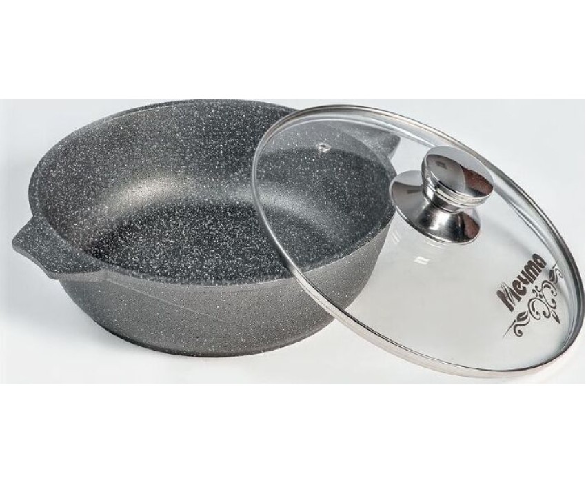Жаровня 5л (30 см) с антипригарным покрытием и стеклянной крышкой серии "Гранит" Подходит для всех типов плит, кроме индукционных. Можно использовать в посудомоечной машине. Можно использовать в духовке отдельно без крышки.