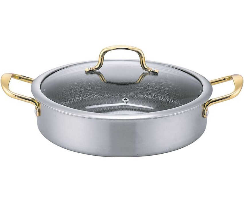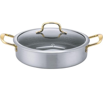 Жаровня с крышкой Z-90256 d24x6 см Allegro, Жаровня с крышкой d24x6 см, высококачественная нержавеющая сталь, 3-Х СЛОЙНЫЙ КОРПУС, ИНДУКЦИОННОЕ ДНО, ИННОВАЦИОННОЕ АНТИПРИГАРНОЕ ПОКРЫТИЕ С ЗАЩИТНОЙ СЕТКОЙ, крышка - стекло с металлическим кантом, металлические ручки «под золото», подарочная упаковка с пластиковой ручкой.