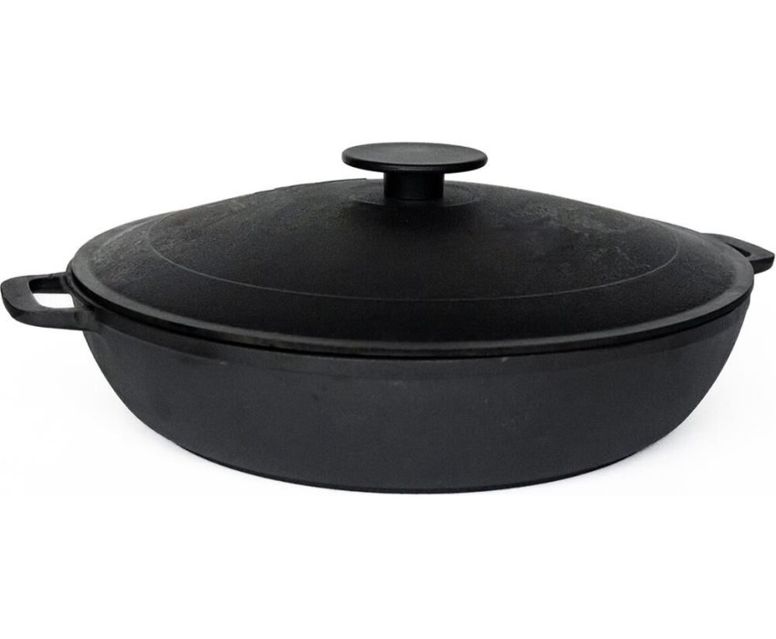 Жаровня 50 см с крышкой ТМ Гардарика. С двумя литыми ручками, чугунная крышка, диаметр - 50 см. Жаровня чугунная Гардарика с крышкой - это идеальная посуда для приготовления разнообразных блюд на открытом воздухе или на домашней кухне. Она сочетает в себе прочность, качество и удобство использования, что делает ее мечтой для любителей готовки и профессионалов. Жаровня выполнена из качественного и прочного металла, который обеспечивает долговечность и равномерное распределение тепла.