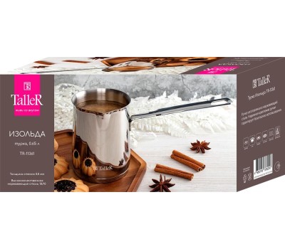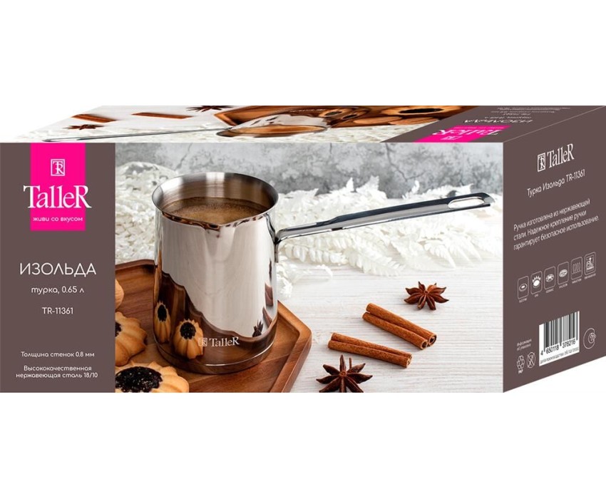 Турка 0,65 л Изольда Материал: нержавеющая сталь, толщина стенки 0,8 мм, толщина дна 4.0 мм Рекомендации: подходит для всех типов плит, влючая индукционные. Пригодна для мойки в посудомоечной машине Упаковка - цветная коробка