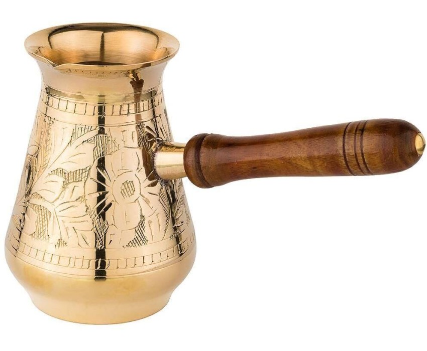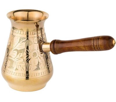 самыми популярными турками являются латунные. Индия издавна славится своими искусными мастерами по обработке металлов, в частности латуни. Основные преимущества: • Эксклюзивность (каждое изделие по своему уникально благодаря ручной работе – минимум машинной обработки, роспись и чеканка делается вручную) • Съемная деревянная ручка (удобно мыть и хранить) • Можно использовать на газовой, электрической и стеклокерамической плите • Экологически чистый материал (в процессе приготовления в пищу не выделяются вредные вещества) • Неприхотливы в уходе (легко чистится подручными средства, только следует избегать абразивных и кислотосодержащих моющих средств) • Долговечны, т.к. латунь не подвержена коррозии Рекомендации по уходу: • Турки для кофе, которые новые, перед использованием нужно ополоснуть кипятком, а первый приготовленный в ней кофе лучше слить.