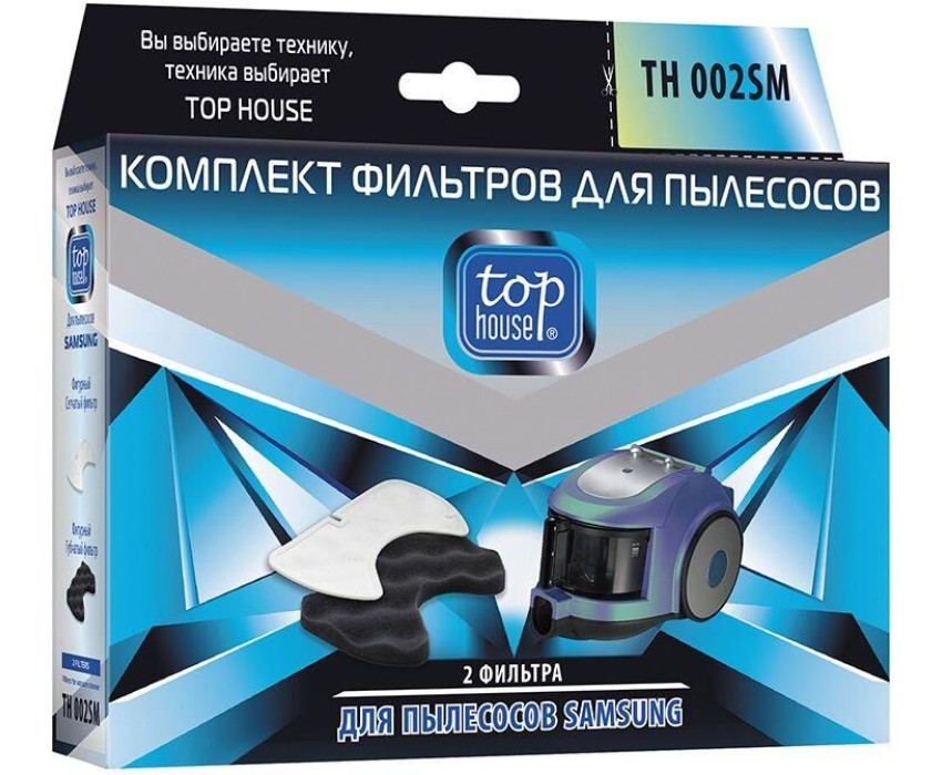 TOP HOUSE TH 002SM Комплект фильтров для пылесосов SAMSUNG: SC 65.., SC 66.., SC 67.., SC 68.., 2 шт. Моющиеся фильтры TOP HOUSE задерживают микрочастицы пыли. Служат для защиты мотора и электронных схем пылесоса от мелкодисперсной пыли. Изготовлены из эластичного пенополиуретана, пластика.