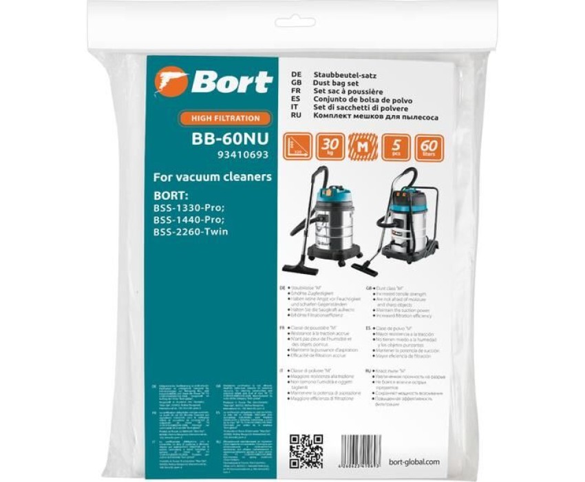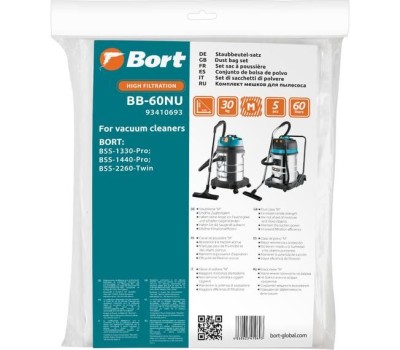 BORT Мешок пылесборный для пылесоса BB-60NU 5 шт (BSS-1330-Pro, BSS-1440-Pro, BSS-2260-Twin)