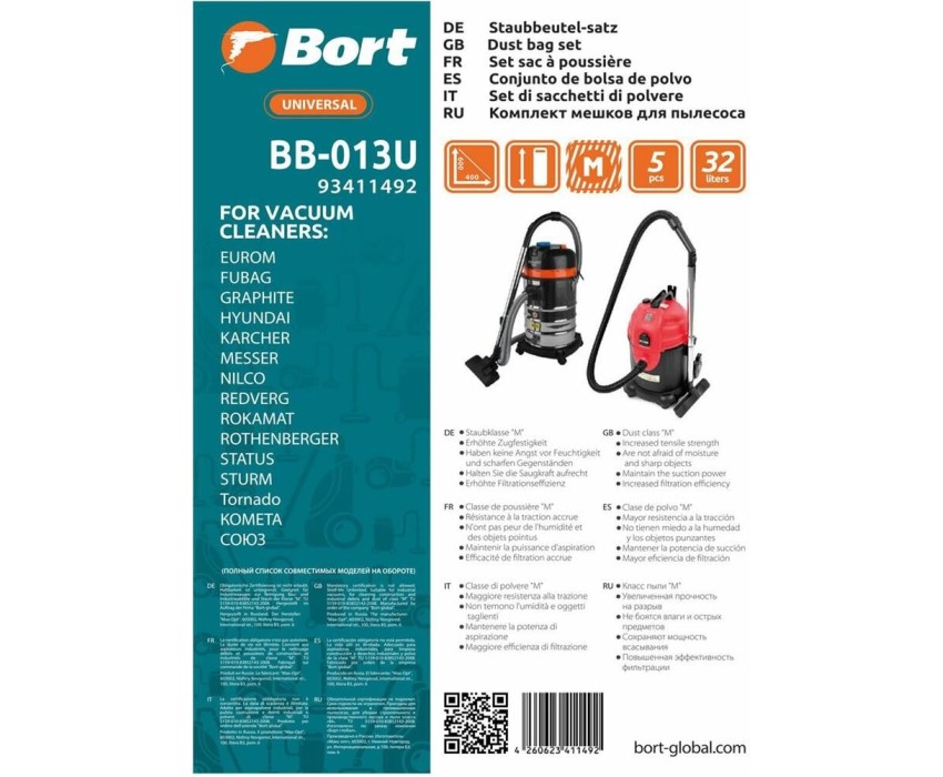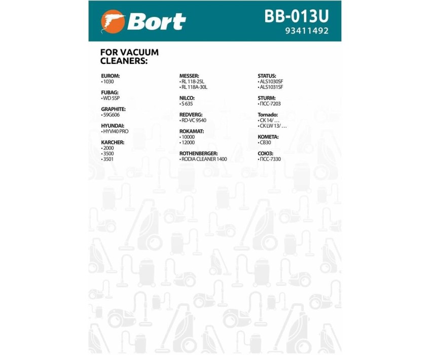 BORT Комплект мешков пылесборных для пылесоса BB-013U