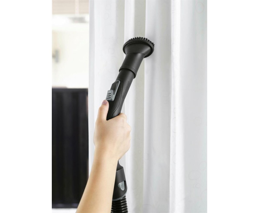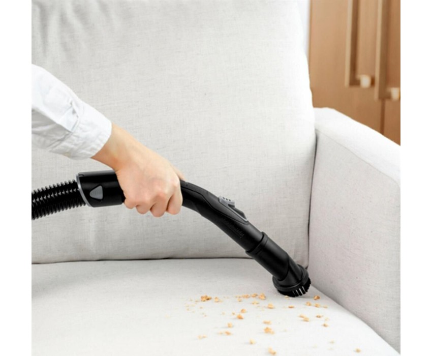 Модель VC 3 (ERP) Работа с контейнером для пыли да Объем пылесборника 0.9 л Мощность 700 Вт Тип уборки Сухой тип уборки есть Фильтры Фильтр тонкой очистки есть Циклонный фильтр есть Конструкция Труба для всасывания телескопическая Легко очищаемый пылесборник да Материал трубы всасывания металл Насадки и принадлежности Общее количество насадок 3 шт Насадка для пола и ковров есть Щелевая насадка есть Насадка для мягкой мебели есть Шланг есть Время работы, зарядка, электропитание Тип электропитания от бытовой электросети Размеры, цвет, вес Уровень шума 76 дБ Цвет белый/черный Вес товара 4.4 кг