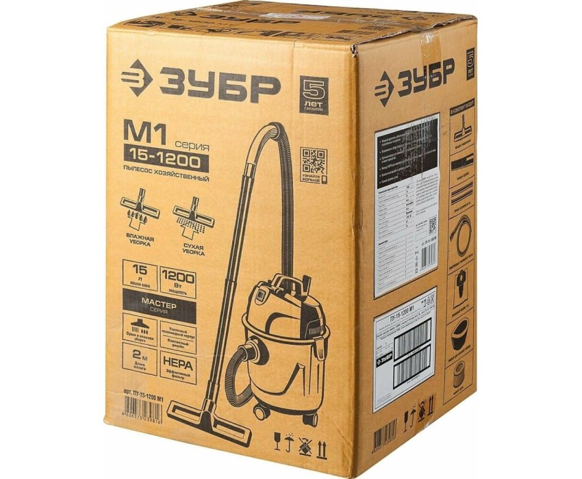 Строительный пылесос ЗУБР ПУ-15-1200 М1 1200Вт