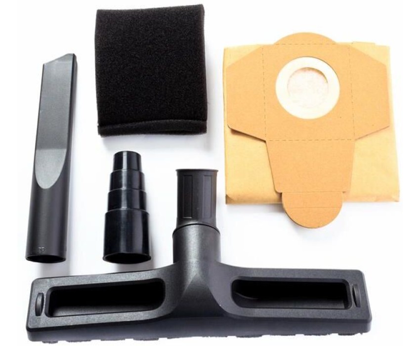 Тип уборки: сухая/сбор воды. Мощность: 1200. Объем пылесборника: 25. Уровень шума: 78. Функция выдува: есть. Уборка воды: есть. Розетка для электроинструмента: есть. Максимельная мощность подключаемого электроинструмента: 2000. Мягкая накладка на рукоятке: нет. Количество насадок в комплекте: 2. Насадки: Щетка для пола, щелевая насадка. Тип питания: от сети. Длина сетевого шнура: 5. Материал шланга: пластик. Материал трубки: пластик. Материал корпуса: нержавеющая сталь. Цвет: черный. Ширина товара: 36. Высота товара: 52. Длина товара: 36. Вес товара: 9. Класс пыли: L. Тип пылесборника: мешок. Регулировка мощности: на корпусе. Диаметр всасывающего шланга: 32. Длина всасывающего шланга: 2. Габариты упаковки (ед) ДхШхВ: 0.365x0.365x0.525. Вес упаковки (ед): 9. Страна производства: Китай. Гарантия: 12 мес.. Мощность: 1200 Вт. Питание: от сети. Функции: выдува, сбора жидкости. Особенности: розетка для электроинструмента. Уровень шума: 78 дБ. Объем пылесборника: 25 л