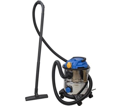 1400Вт; бак 20л; 18КПа, фильтр-мешок 20/36 л/мм, диаметр шланга 32 мм, розетка для подключения электроинструмента до 2000Вт, функция обдува, корпус из нерж.стали, телескоп штанга, дренаж отверстие, для сухой и влажной уборки, HEPA - фильтр, фильтр бумажны