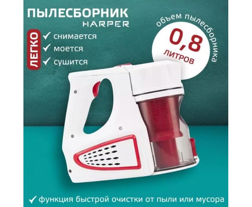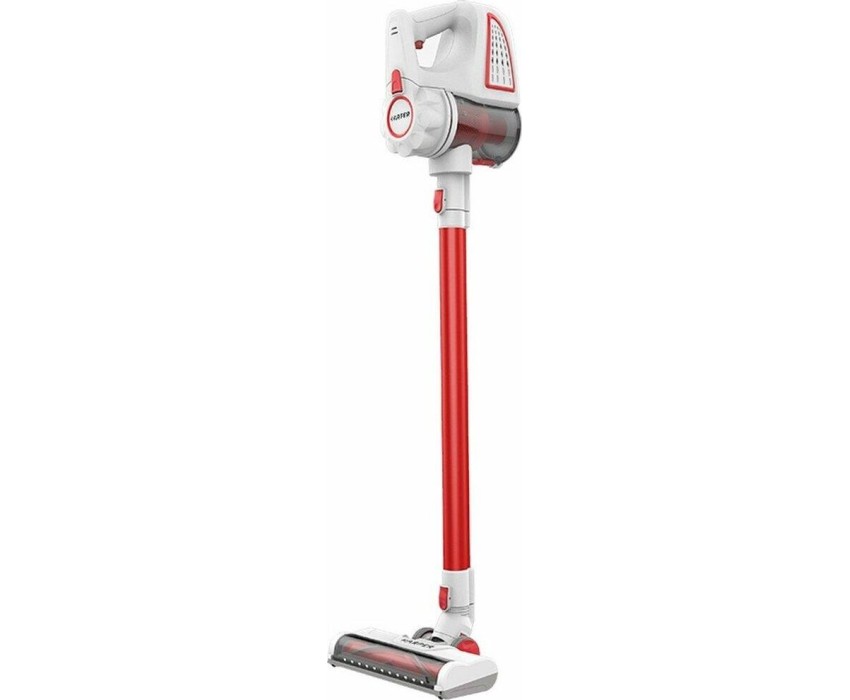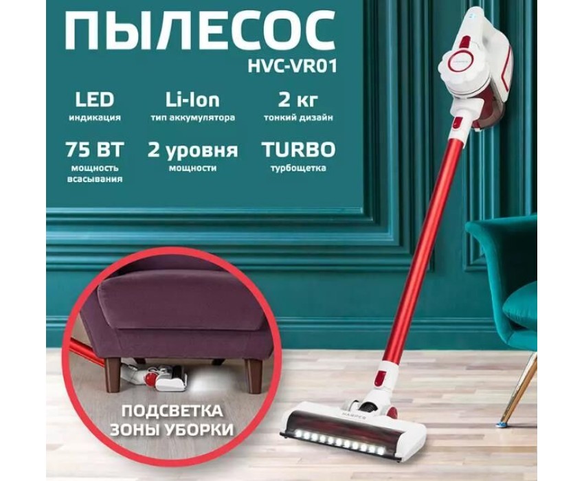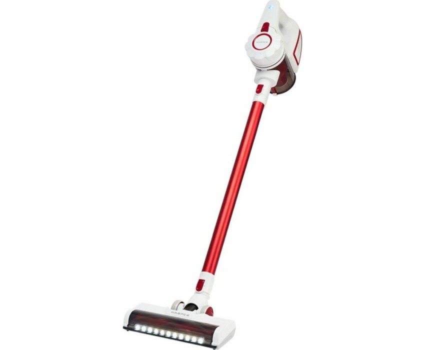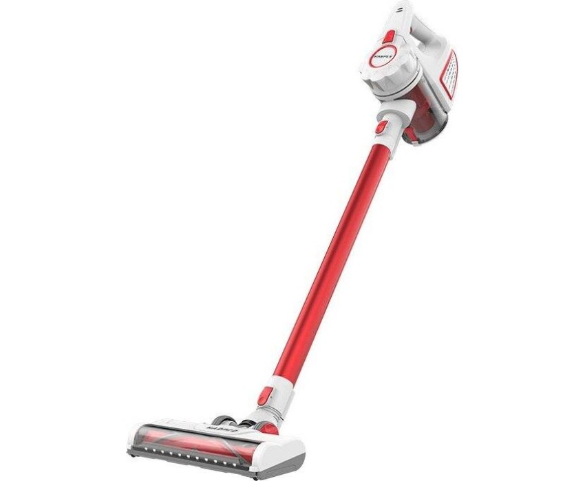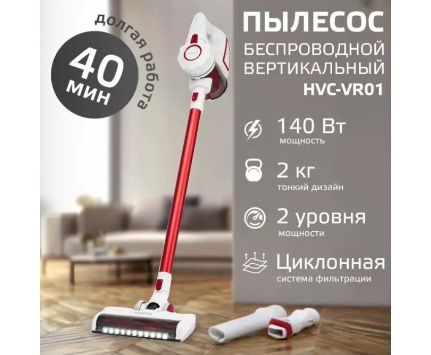 Тип пылесоса: вертикальный беспроводной. Мощность: 140 Вт. Регулировка мощности: 2 уровня. Мощность всасывания: 75 Вт. Время непрерывной работы: до 40 мин. Уровень шума: 80 дБ. Объем пылесборника: 0,8 л. Подсветка области уборки: да. Тип аккумулятора: Li-Ion. Напряжение аккумулятора: 21.6 В. Емкость аккумулятора : 2200 мАч. Время полной зарядки : до 4 часов. Входное напряжение сетевого адаптера: 110-240 В, 50-60 Гц. Выходное напряжение сетевого адаптера: 26,5 В, 500 мА. Защита от поражения электрическим током: класс 3. Цвет: белый/красный. Размеры (ШхВхГ): 305x1100x205 мм. Вес: 2 кг.