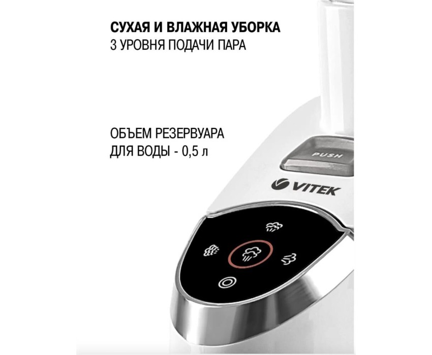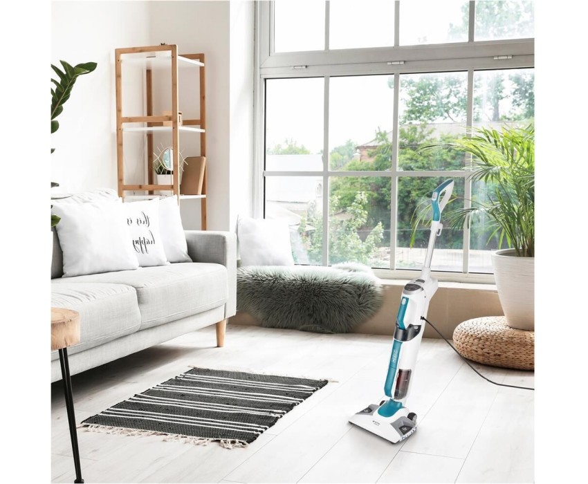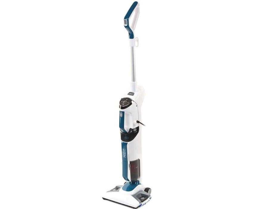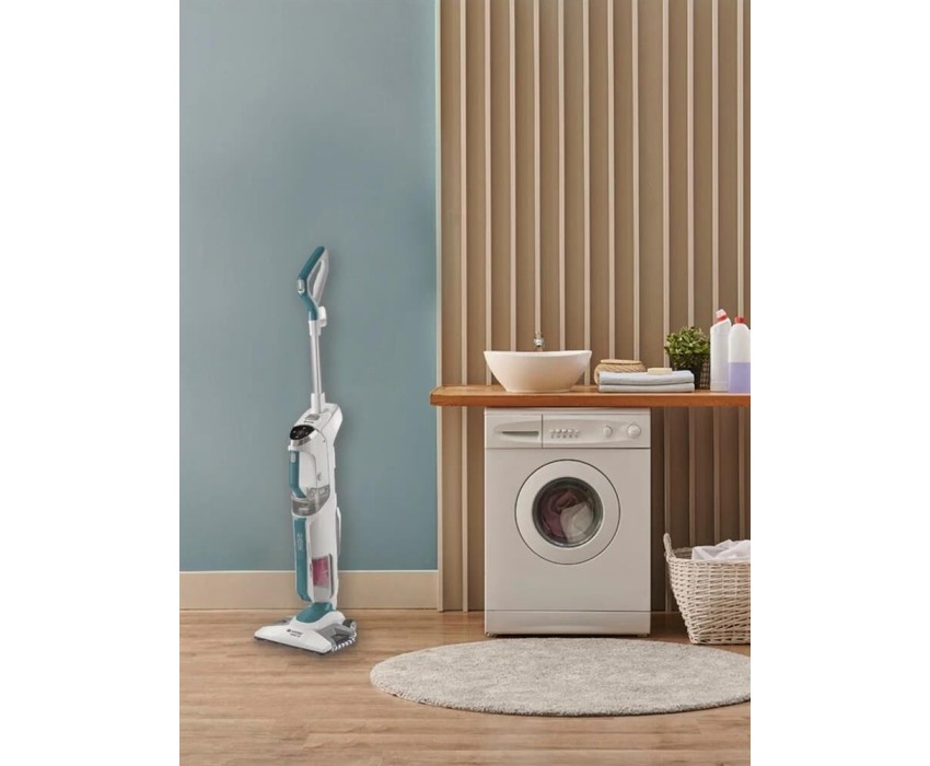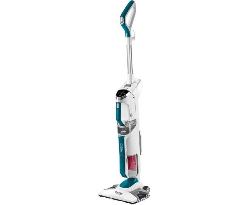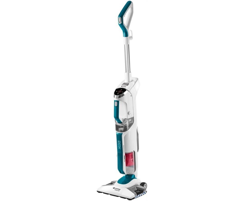 Вертикальный паровой пылесос.Тип уборки: сухая/влажная, Мощность всасывания: 12 кПа Вт, Объём пылесборника: 0,4 литра, Тип пылесборника: контейнер, Длина сетевого шнура: 5 метров, Настенное крепление, Источник питания, Дополнительно: 3-в-1 вертикальный пылесос, паровая швабра, ручной пароочиститель, Количество режимов движения: 3, Подача пара: 15-25 г/мин, Объем резервуара для воды: 0,5 литра, Фильтр для воды (анти-кальциевый), Мощность паровой швабры: 1200 Вт, Номинальная потребляемая мощность: 1800 вт, Цвет: Белый/аквамарин