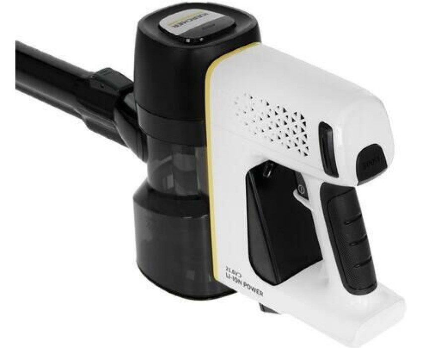 Мощность: 140. Объем пылесборника: 0.65. Регулировка мощности: на корпусе. Общее количество насадок: 4. Вес товара: 2.35. Труба для всасывания: цельная. Тип электропитания: от аккумулятора. Тип аккумулятора: Li-Ion. Емкость аккумулятора: 2500. Уровень шума: 78. Габариты упаковки (ед) ДхШхВ: 0.74x0.18x0.3. Вес упаковки (ед): 2.7. Количество аккумуляторов: 1. Напряжение аккумулятора: 21.6. Материал трубы всасывания: пластик. Съемный ручной пылесос: да. Гарантия: 24 мес.. Время уборки: 18 - 30 минут. Время заряда: 345 минут. Размеры (ШхВхД): 236 х 1115 х 230 мм. Цвет: белый/черный. Пылесборник: контейнер для пыли. Комплектация: насадка для мягкой мебели, насадка для пола и ковров, щелевая насадка. Особенности пылесоса: легко очищаемый пылесборник, настенное крепление, шланг. Тип уборки: сухой. Уровень шума: 78 дБ. Пылесборник: контейнер для пыли; объем пылесборника: 0.65 л. Аккумулятор: Li-Ion; 2500 мAч. Комплектация: насадка для мягкой мебели, насадка для пола и ковров, щелевая насадка. Тип уборки: сухой. Мощность: потребляемая 140 Вт