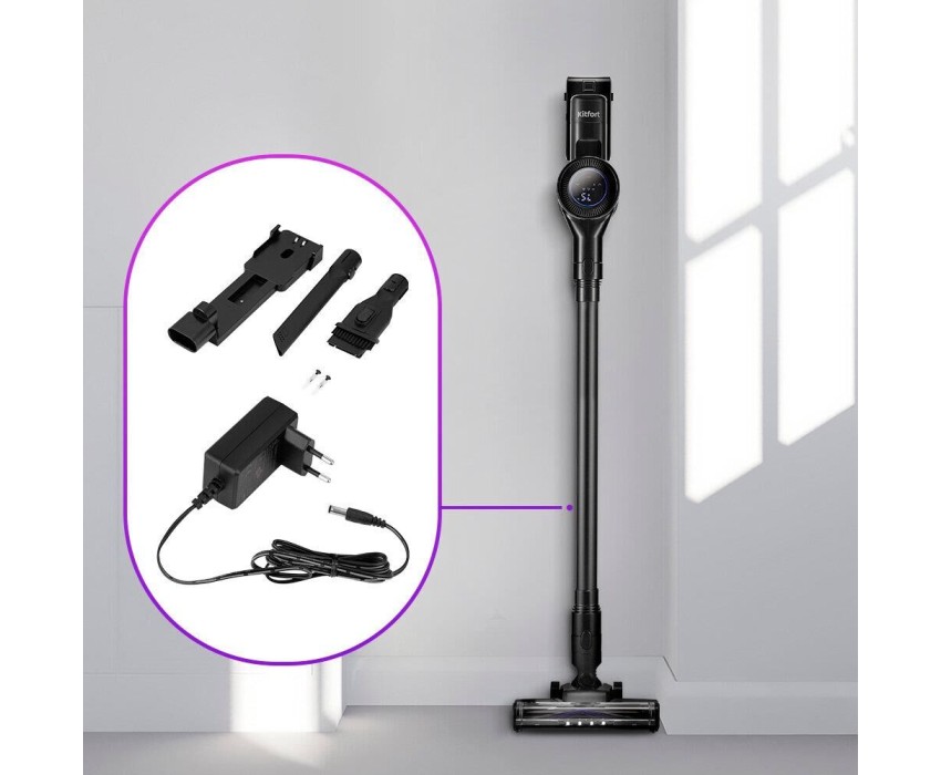 Мощность: 350. Объем пылесборника: 0.8. Регулировка мощности: на корпусе. Общее количество насадок: 3. Вес товара: 2.4. Труба для всасывания: цельная. Другие насадки и принадлежности: кронштейн с комплектом крепежа. Тип электропитания: от аккумулятора. Тип аккумулятора: Li-Ion. Емкость аккумулятора: 2000. Длина сетевого шнура: 1.5. Уровень шума: 72. Габариты упаковки (ед) ДхШхВ: 0.68x0.14x0.26. Вес упаковки (ед): 3.25. Страна производства: Китай. Количество аккумуляторов: 1. Съемный ручной пылесос: да. Входное напряжение (макс): 240. Входное напряжение (мин): 100. Тип вилки: ЕВРО. Частота электросети: 50 - 60 Гц. Гарантия: 12 мес.. Время уборки: 15 - 45 минут. Время заряда: 240 - 300 минут. Размеры (ШхВхД): 240 х 1080 х 105 мм. Цвет: черный/черный. Тип уборки: сухой. Пылесборник: контейнер для пыли. Безопасность и управление: защита от перегрева. Фильтры: HEPA, грубой очистки, моторный фильтр, тонкой очистки. Комплектация: насадка для мягкой мебели, турбощетка, щелевая насадка. Особенности пылесоса: LED-дисплей, легко очищаемый пылесборник, место для хранения насадок, настенное крепление, подсветка зоны уборки. Индикация: включения, режима работы. Мощность: потребляемая 350 Вт. Аккумулятор: Li-Ion; 2000 мAч. Пылесборник: контейнер для пыли; объем пылесборника: 0.8 л. Уровень шума: 72 дБ. Фильтры: HEPA, грубой очистки, моторный фильтр, тонкой очистки. Комплектация: насадка для мягкой мебели, турбощетка, щелевая насадка. Тип уборки: сухой
