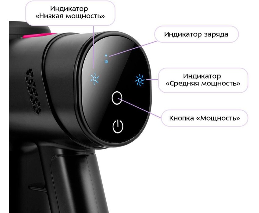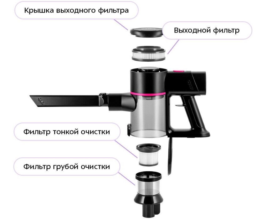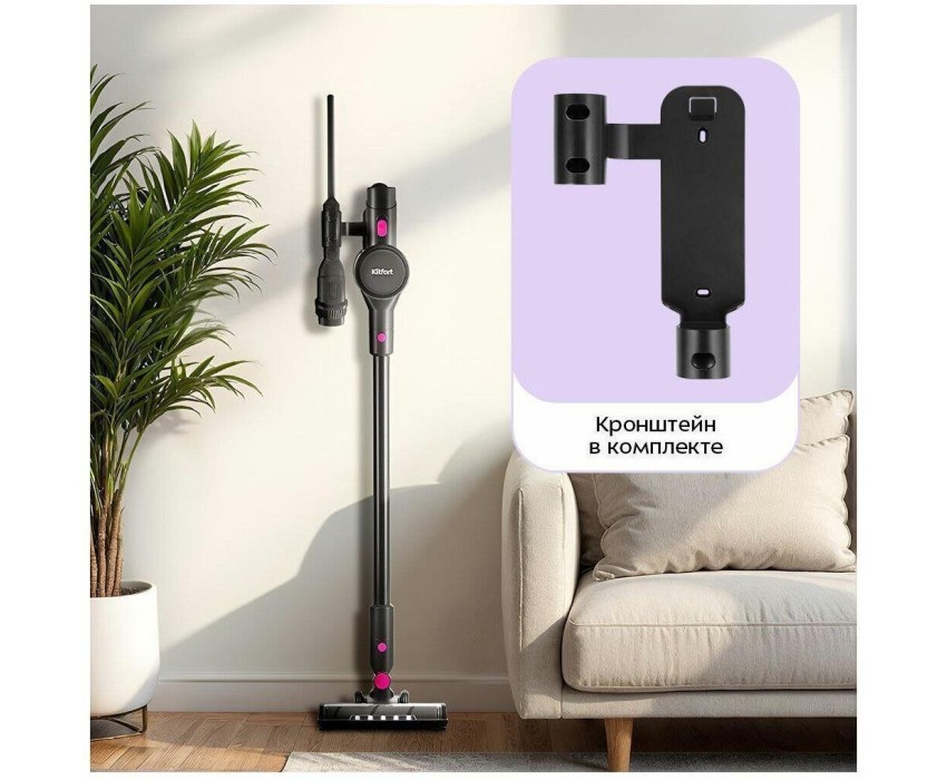 Мощность: 400. Мощность всасывания (Вт): 200. Объем пылесборника: 0.6. Регулировка мощности: на ручке. Общее количество насадок: 3. Вес товара: 2.3. Тип электропитания: от аккумулятора. Тип аккумулятора: Li-Ion. Емкость аккумулятора: 2500. Длина сетевого шнура: 1.5. Уровень шума: 80. Габариты упаковки (ед) ДхШхВ: 0.695x0.304x0.127. Вес упаковки (ед): 3.7. Страна производства: Китай. Съемный ручной пылесос: да. Входное напряжение (макс): 240. Входное напряжение (мин): 100. Тип вилки: евро-вилка. Частота электросети: 50 - 60 Гц. Гарантия: 12 мес.. Время уборки: 10 - 50 минут. Время заряда: 240 - 270 минут. Размеры (ШхВхД): 260 х 1110 х 210 мм. Цвет: черный/розовый. Фильтры: тонкой очистки, циклонный. Особенности пылесоса: LED-дисплей, настенное крепление, подсветка зоны уборки. Тип уборки: сухой. Пылесборник: контейнер для пыли. Комплектация: насадка для мягкой мебели, насадка для пола и ковров, щелевая насадка. Индикация: включения, режима работы, степени зарядки. Тип уборки: сухой. Аккумулятор: Li-Ion; 2500 мAч. Комплектация: насадка для мягкой мебели, насадка для пола и ковров, щелевая насадка. Уровень шума: 80 дБ. Фильтры: тонкой очистки, циклонный. Мощность: потребляемая 400 Вт; всасывания 200 Вт. Пылесборник: контейнер для пыли; объем пылесборника: 0.6 л