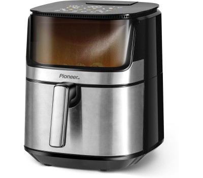 Аэрогриль, электронное управление, цветной светодиодный дисплей, мощность: 1850 Вт, внутренний объем камеры: 8 Л, функция приготовления на пару, антипригарное покрытие, смотровое окно , внутренняя подсветка, таймер: до 60 минут, регулируемая температура: 80 -200 градусов, ручная настройка режимов приготовления, 10 предустановленных программ приготовления: замороженный картофель фри, выпечка, сладкий картофель, пицца, рыба, креветки, стейк, куриные ножки, куриные крылышки, арахис, технология "Fry Force 360°" позволяет готовить блюда быстро и равномерно, практически без масла
