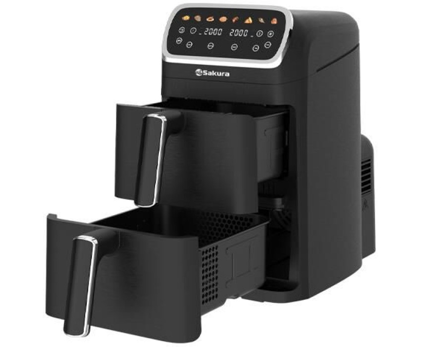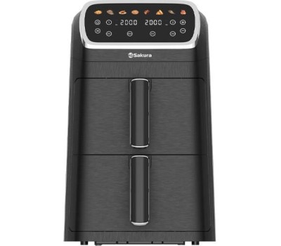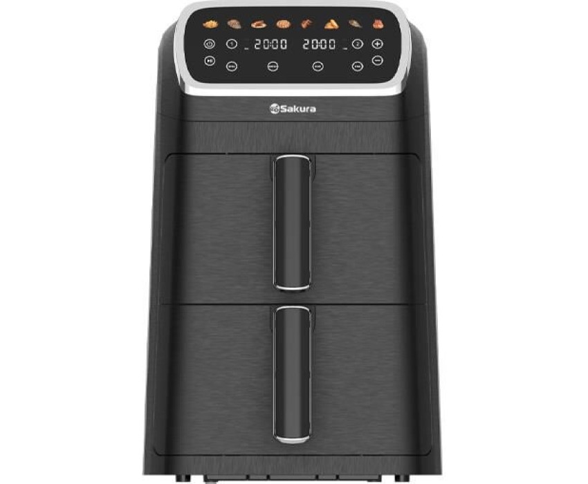 Аэрогриль; Мощность: 2600 Вт; Общий объем: 10л (2 чаши по 5 л); 8 программ приготовления; Возможность готовки каждой чаше по отдельности или в обеих сразу; Регулировка температуры: 80-200 °C; Таймер на 60 мин; Сенсорное управление; Готовит без масла или с минимальным его использованием; Подходит для всех блюд, которые готовятся в духовке; Цвет: черный; Длина шнура 80см; Размер: 352x222.5x404 мм