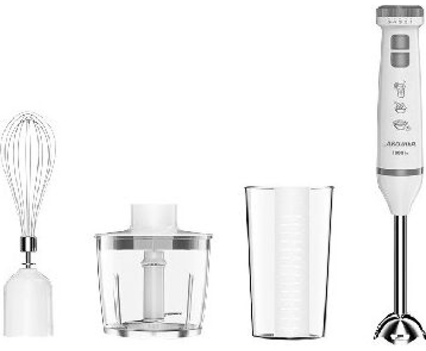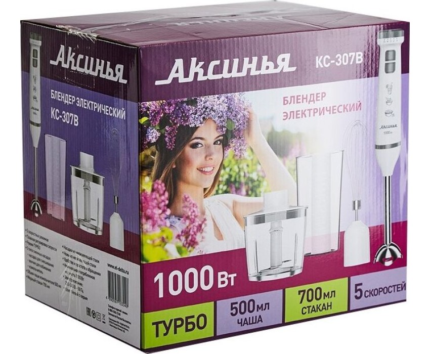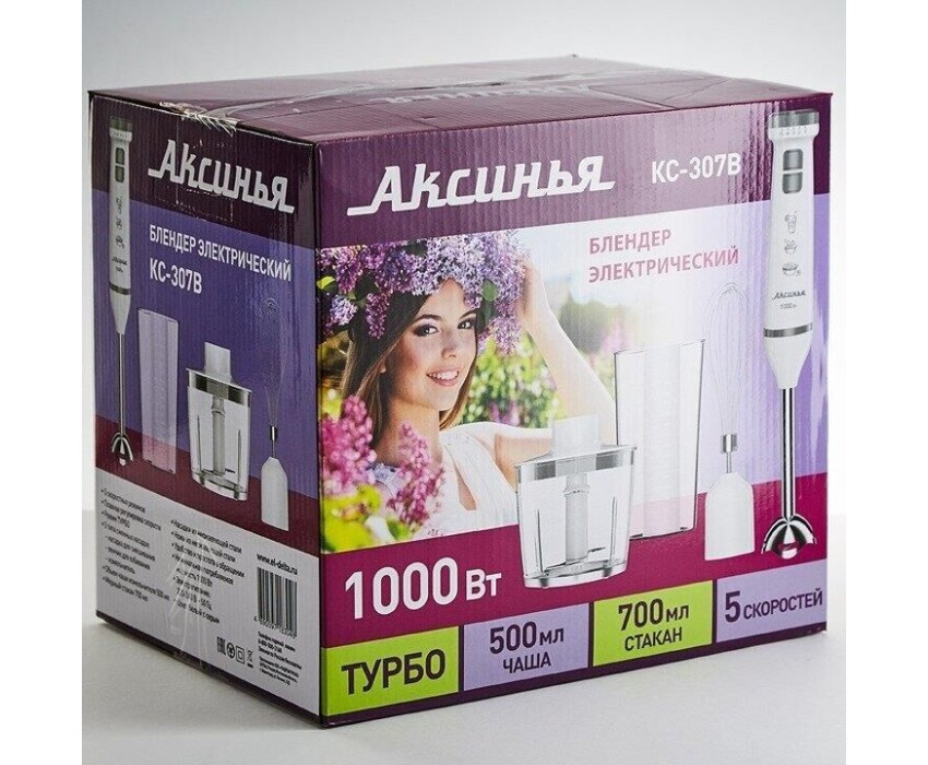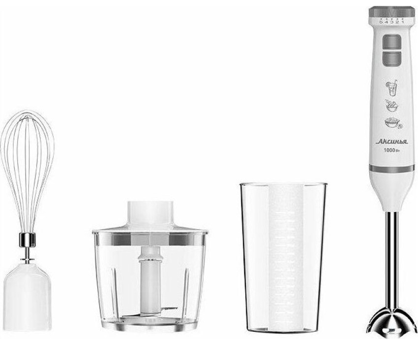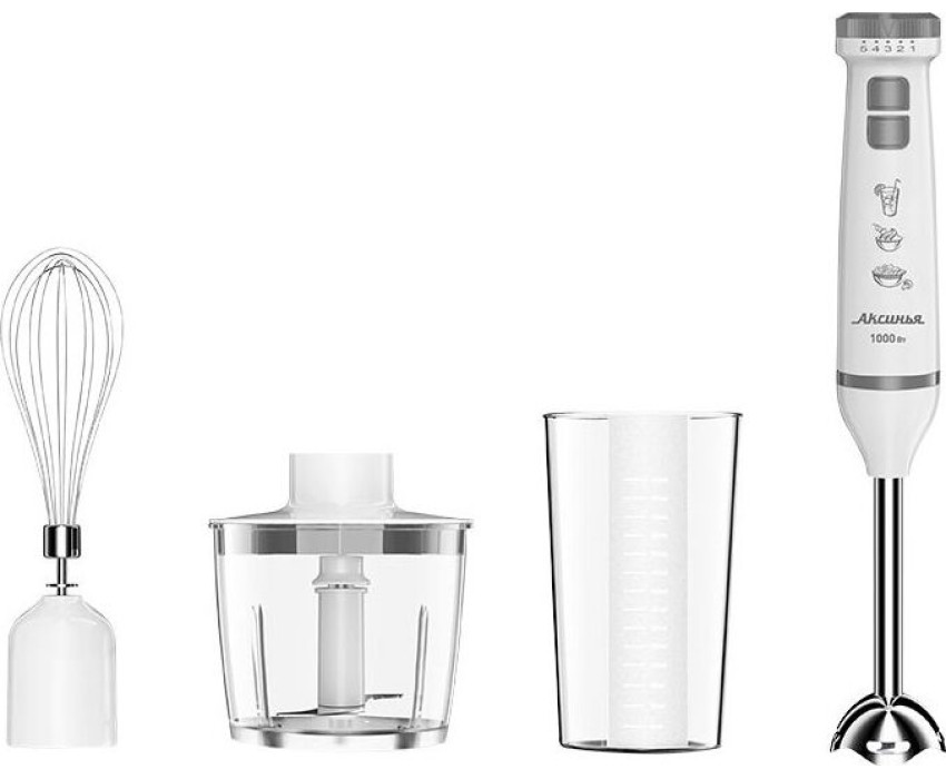 Номинальная потребляемая мощность 1000 Вт Объем чаши измельчителя 500 мл Объем мерного стакана 700 мл Блендер представляет собой многофункциональное устройство для смешивания, измельчения и взбивания продуктов и жидкостей в бытовых условиях Нож и насадки из нержавеющей стали Три сменных насадки: насадка для смешивания венчик для взбивания измельчитель Мерный стакан 5 скоростных режимов Режим «ТУРБО» Плавное переключение скоростей Цвет: белый с серым Производитель: Россия