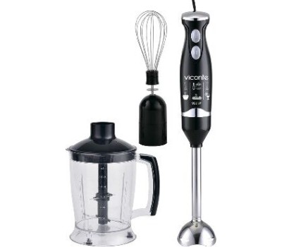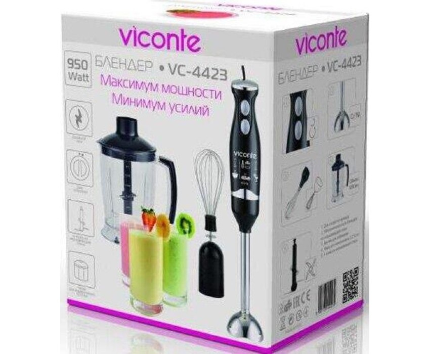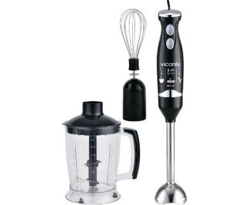 Погружной блендер, мощность 950W, современный эргономичный дизайн, пульсовый режим работы, 2 скорости, 4 лезвия из нержавеющей стали, металлическая нога блендера, венчик для взбивания, чаша с ножом для рубки и измельчения, 1250 мл; автоматическая блокировка при неправильно установленной насадке, удобство и простота в обращении и чистке.