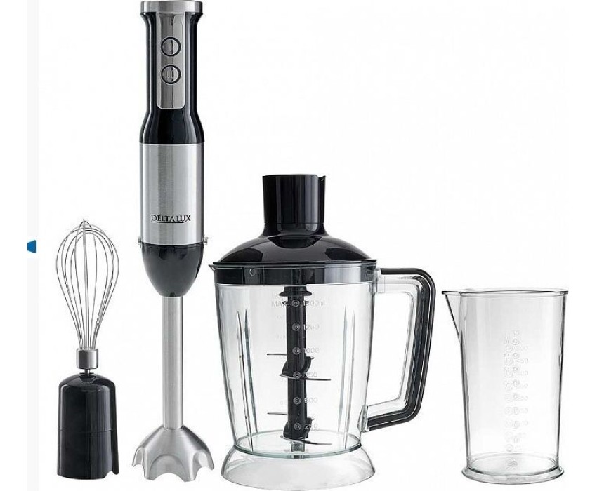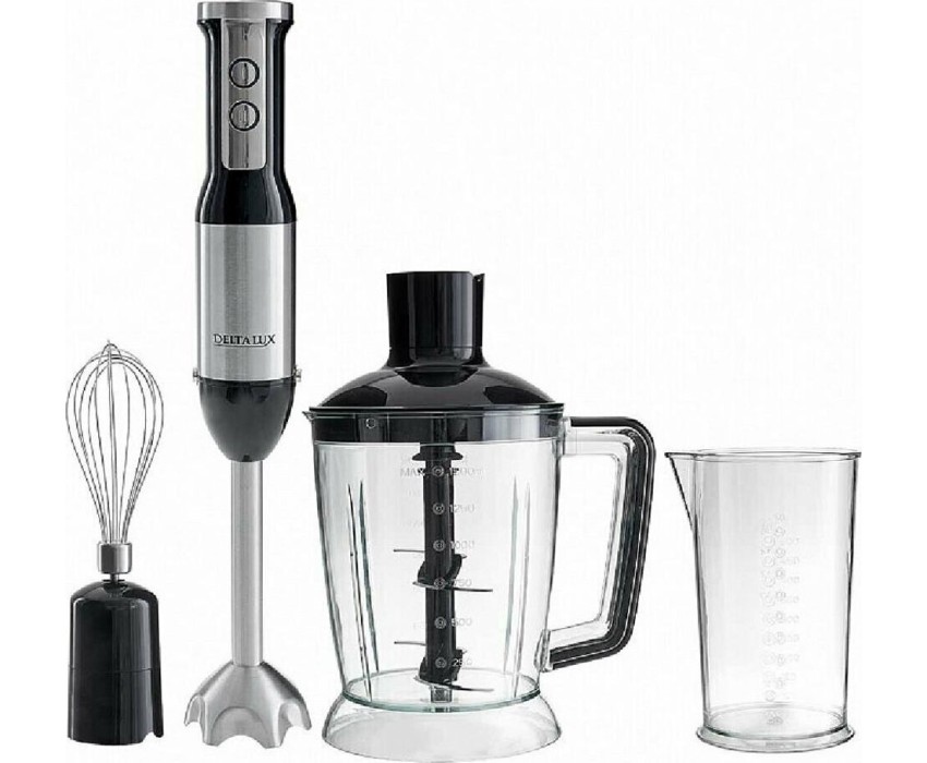 DELTA LUX DE-7003B черный Параметры Максимальная потребляемая мощность 1000 Вт Номинальная потребляемая мощность 600 Вт Объем чаши измельчителя 1500 мл Объем мерного стакана 500 мл Описание Блендер электрический предназначен для смешивания, измельчения и взбивания продуктов и жидкостей в бытовых условиях Идеально подходит для приготовления супов-пюре, соусов и подлив, детского питания, смешивания разнообразных коктейлей, измельчения продуктов в бытовых и аналогичных условиях, в частности: в кухонных зонах для персонала в магазинах, офисах и прочих производственных условиях; в фермерских домах; клиентами в гостиницах, мотелях и прочей инфраструктуре жилого типа; в условиях режима пансиона «проживание плюс завтрак» Цвет: черный Двойной нож из нержавеющей стали Три сменные насадки: насадка для измельчения и смешивания венчик для взбивания измельчитель Мерный стакан Индикатор сети с LED-подсветкой кнопок