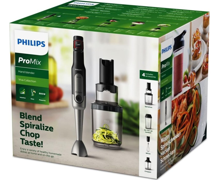 Тип устройства погружной (ручной) блендер. Объем шейкера 500 мл. Мощность 800 Вт. Плавная регулировка скорости. Управление одной кнопкой. Турборежим. Импульсный режим. Емкости чаша для измельчения. Шейкер (дорожная чаша) 1 шт. Насадки ножка-блендер, венчики для взбивания, нож для измельчителя, диск для шинковки / нарезки / 3 шт. Питание сеть. Материал ножки-блендера металл.