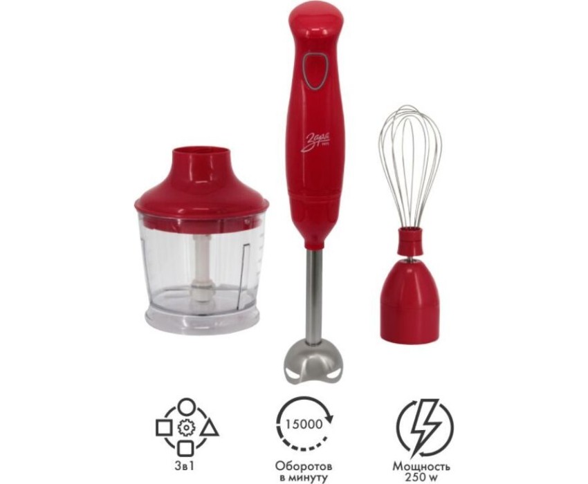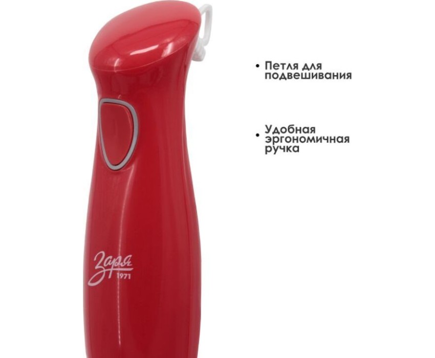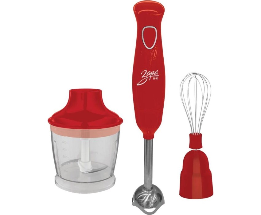 ЗАРЯ 301-04 Мощность 250 Вт, чаша-измельчитель (500 мл), насадка венчик, насадка блендер из нержавеющей стали УДОБНО Конструкция с прямым приводом наиболее удобна и проста в использовании. Ручка блендера изготовлена с учетом анатомических особенностей руки человека. МОЩНОСТЬ Высоко оборотистые двигатели данной модели позволяют свести время работы до нескольких секунд и полностью соответствуют европейским нормам безопасности. ЛЕГКОСТЬ В РАБОТЕ Использование разборной конструкции блендера позволяет его быстро мыть и компактно хранить. ФУНЦИОНАЛЬНОСТЬ С помощью блендера можно быстро и качественно: измельчить орехи, травы, сыр, приготовить горячее пюре прямо в кастрюле (50°С), смешать коктейль или детское питание.