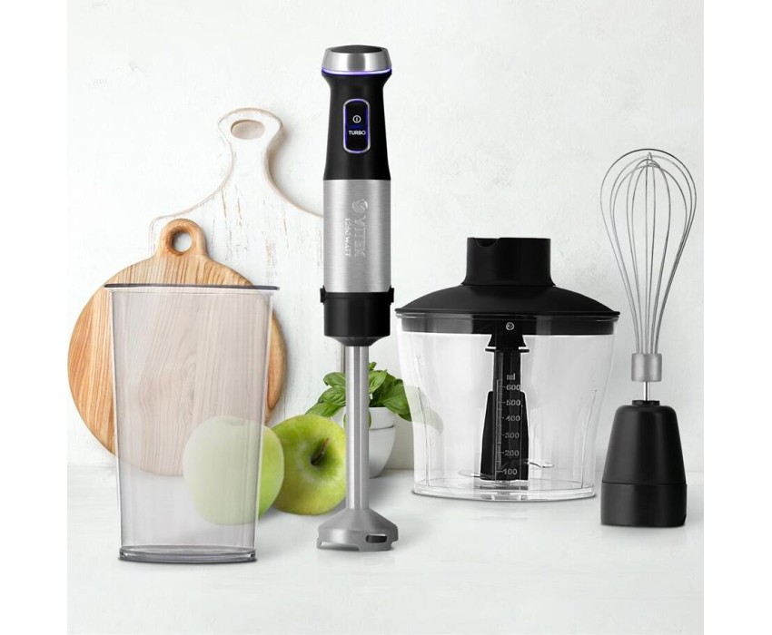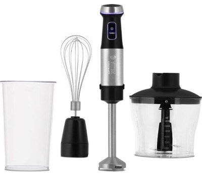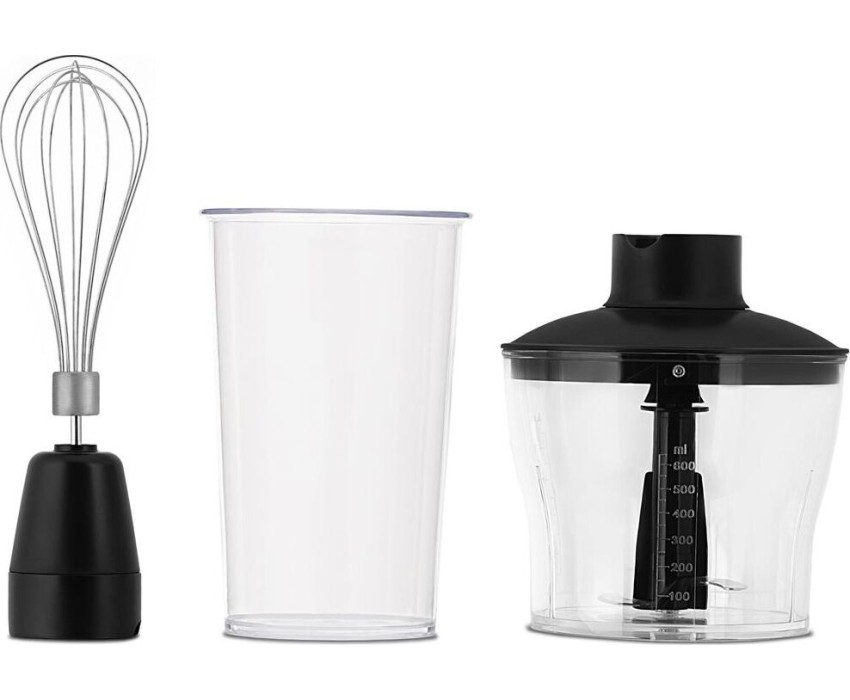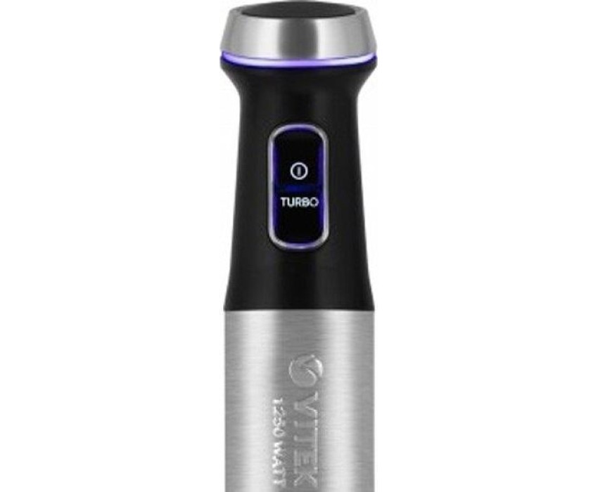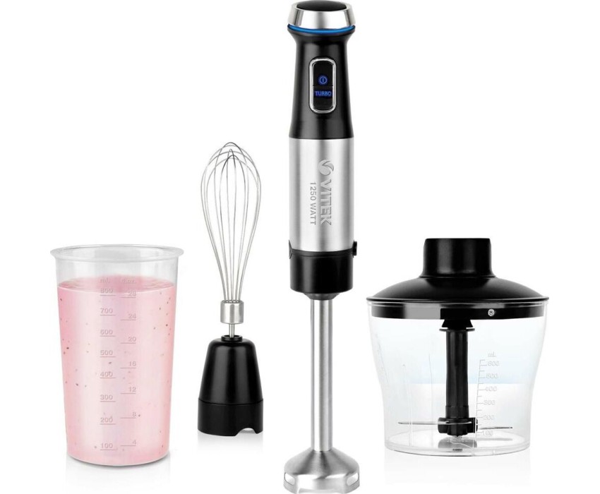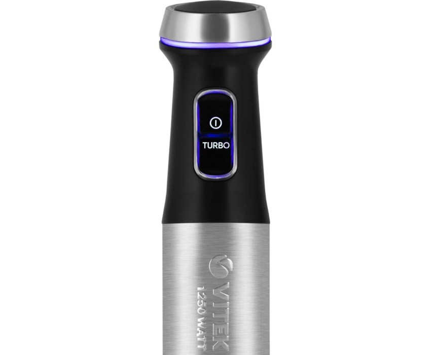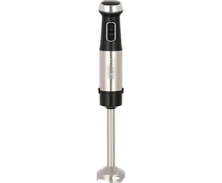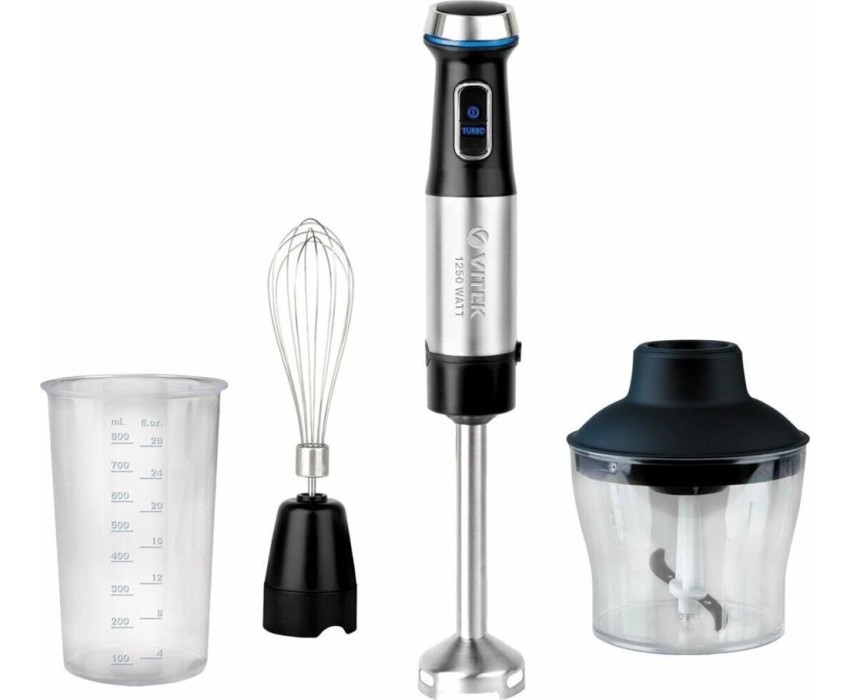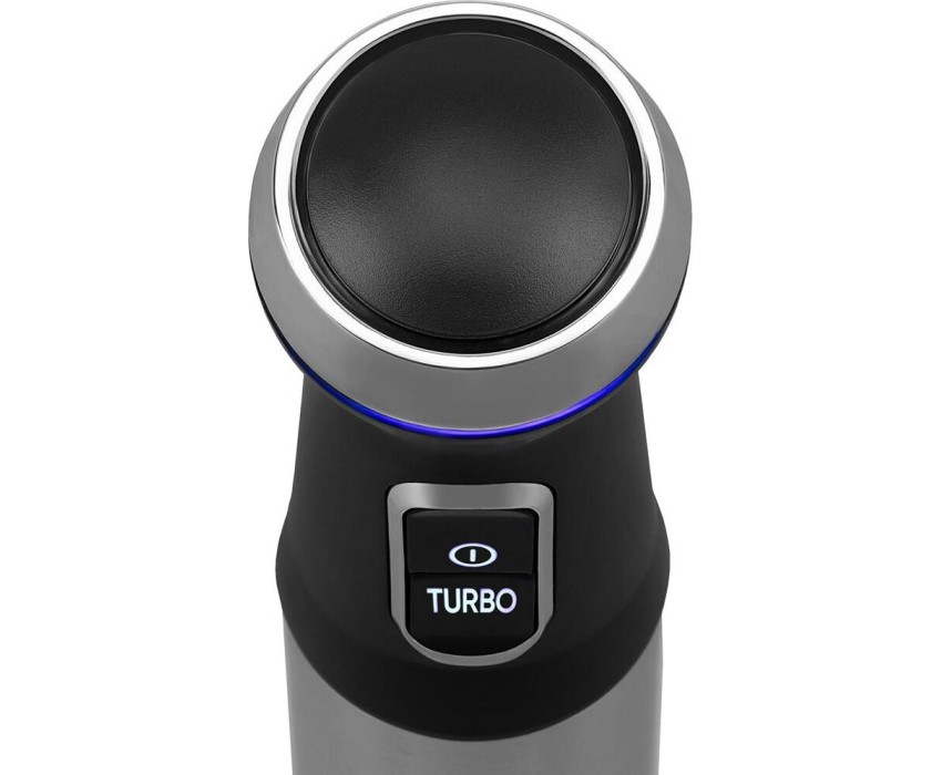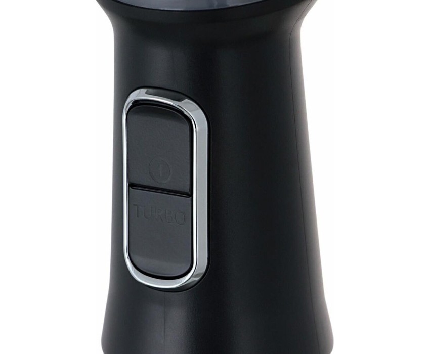 Блендер погружной. Мощность: 1250 вт, Количество скоростей: 24, Турборежим, Плавная регулировка скорости, Управление: механическое, Материал корпуса: пластик, Материал погружной части: нержавеющая сталь, Емкость измельчителя: 650 мл, Емкость мерного стакана: 800 мл, Венчик для взбивания, Длина сетевого шнура: 110см, Цвет: Черный/серебро.