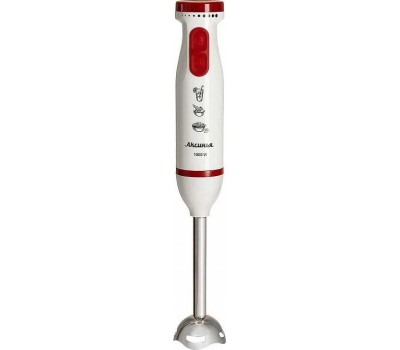 Параметры Максимальная мощность 1000 Вт Номинальная потребляемая мощность 600 Вт Описание Блендер электрический предназначен для смешивания, измельчения и взбивания продуктов и жидкостей в бытовых и аналогичных условиях Цвет: белый с красным Насадка и нож из нержавеющей стали 1 скорость работы Плавная регулировка скорости Режим «ТУРБО» Упаковка: цветная коробка