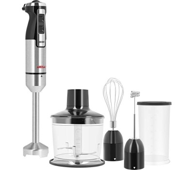 • Номинальная потребляемая мощность: 400Вт • Максимальная мощность: 800 Вт • Плавная регулировка скорости • Функция "ТУРБО" (максимальное увеличение скорости) • Ножка блендера из нержавеющей стали • Съемная насадка-блендер с 4-х лопастным ножом • Эргономичный дизайн 4 ОСНОВНЫЕ ФУНКЦИИ: • Измельчение • Смешивание • Взбивание • Капучинатор КОМПЛЕКТАЦИЯ: • Мерный стакан для смешивания (объём 0,6 л) с крышкой • Чаша для измельчения (объём 0,5 л) с крышкой • Венчик для взбивания • Нож для измельчения • Вспениватель молока