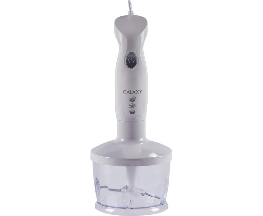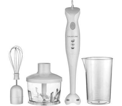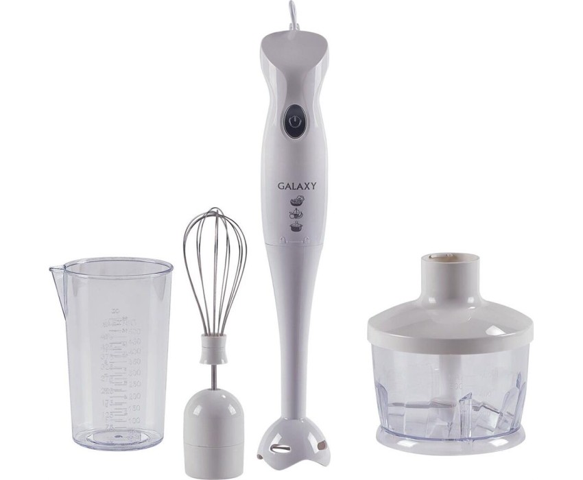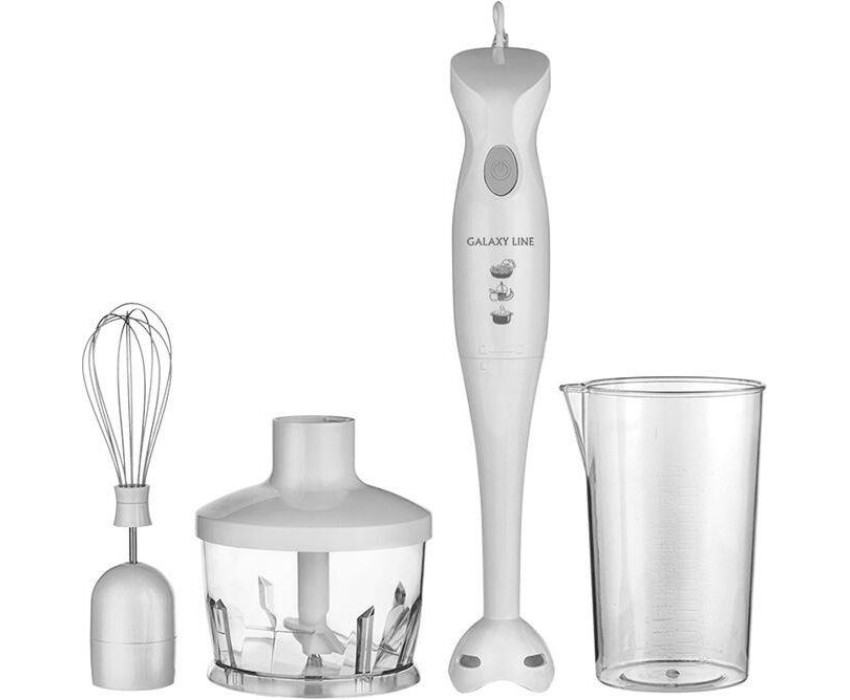 Блендерный набор Galaxy LINE GL 2127, белый с серым, погружной, 300 Вт, насадка-блендер, насадка-венчик, насадка-измельчитель 500 мл, подвесная петля, мерный стакан 500 мл, книга рецептов
