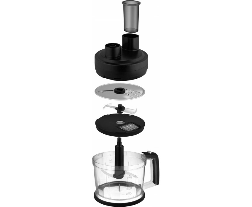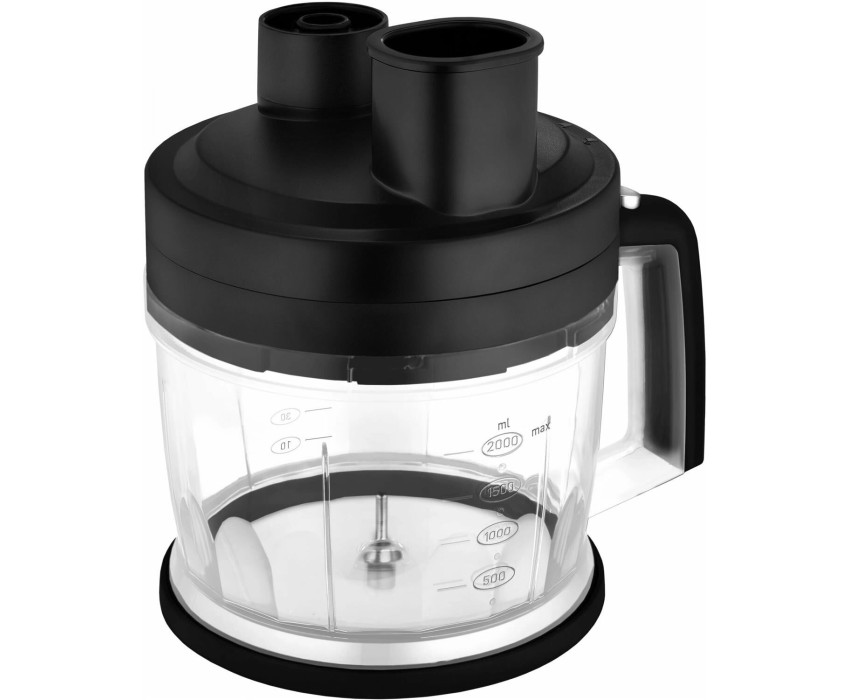 Блендер погружной (набор). Мощность 1000 Вт. Объем чаши: 2 литра. Количество скоростей / режимов: 6. Особенности: насадка для пюре. Функциональные особенности: нарезка кубиками, регулировка скорости вращения, режим Турбо, функция взбивания. Емкости в комплекте: измельчитель.