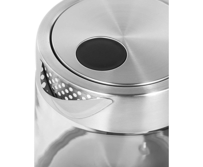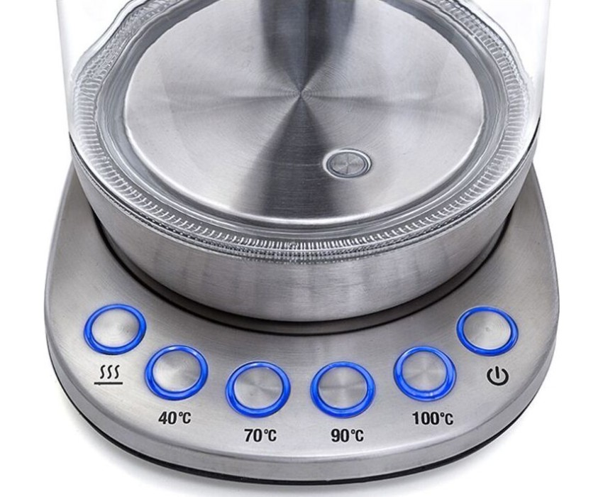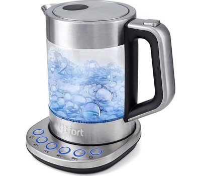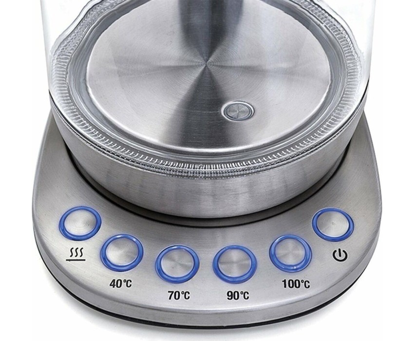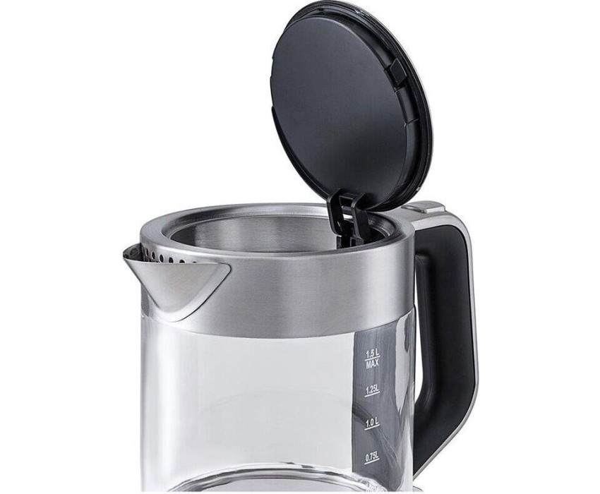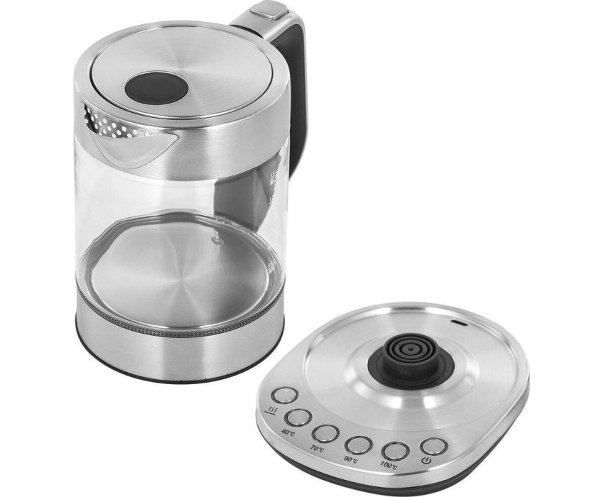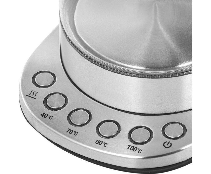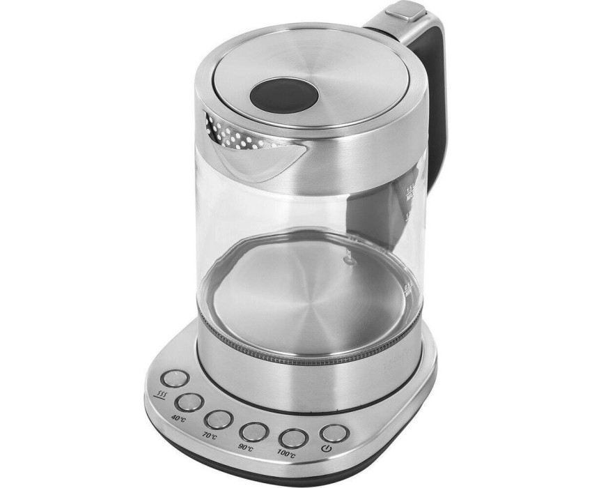 Мощность 2200 Вт. Максимальный объем 1.5 л. Нагревательный элемент скрытый. Индикатор включения есть. Индикатор уровня воды есть. Автоматическое отключение есть. Регулировка температуры нагрева есть. Температурные режимы 4 шт. Звуковой сигнал при закипании есть. Материал корпуса нержавеющая сталь/стекло. Цвет серебристый.