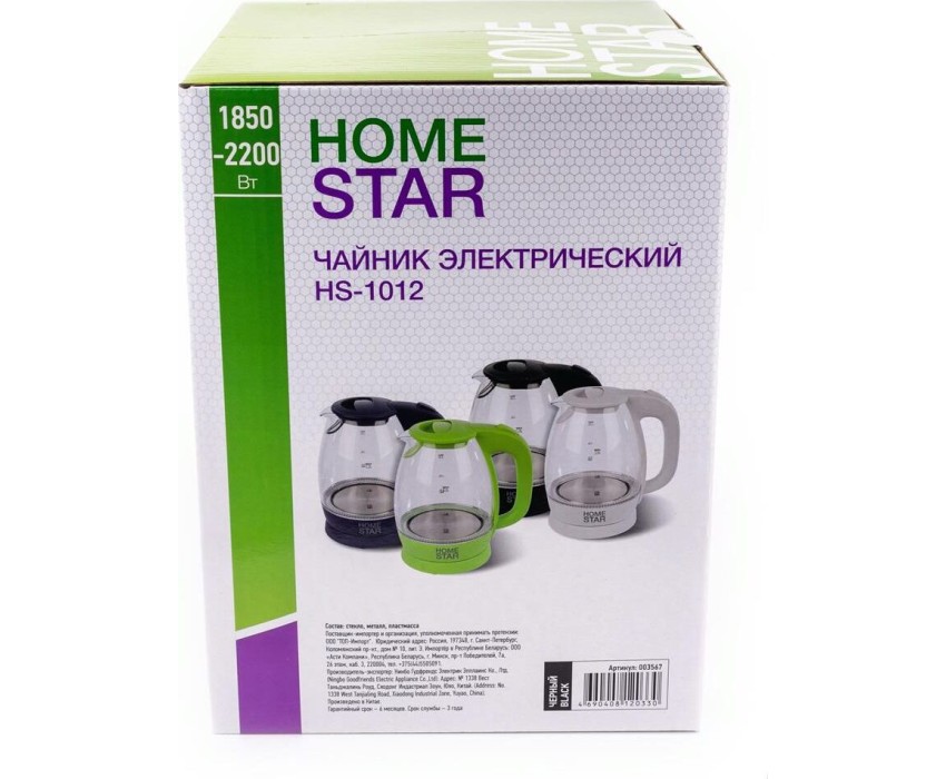 Чайник электрический HOMESTAR HS-1012 черный стекло