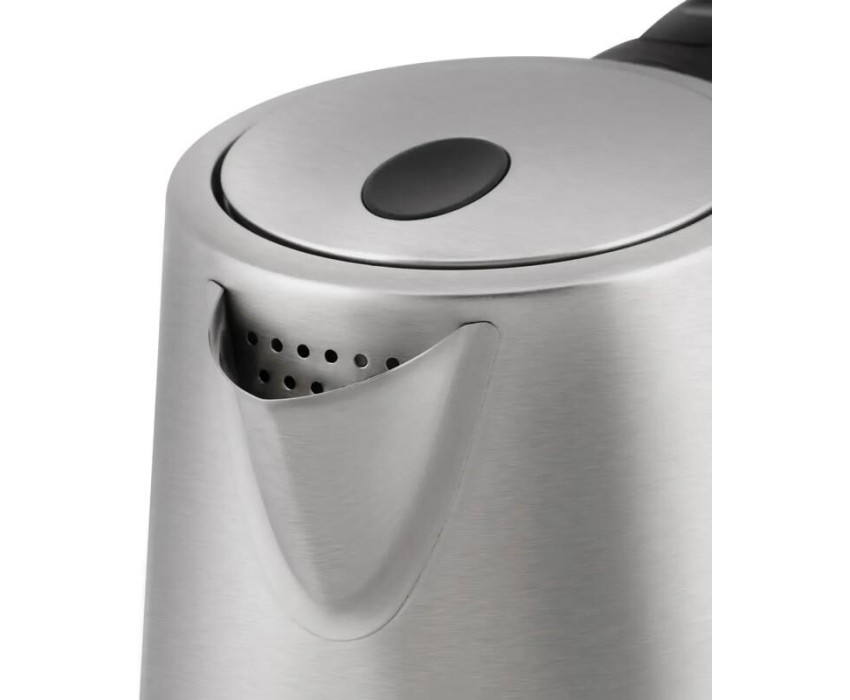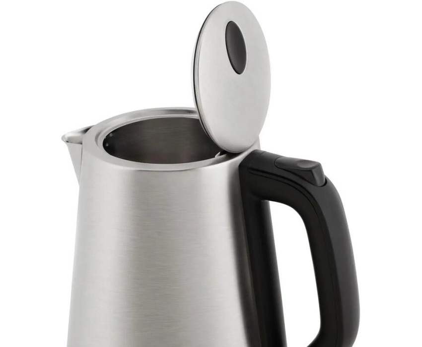 Чайник электрический. Мощность: 2200 Вт, Объем: 1,7 литра, Материал корпуса: нержавеющая сталь, Способ открывания крышки: автоматическое, Индикатор уровня воды, Индикация включения, Отключение при отсутствии воды, Отсек для хранения шнура, Тип нагревательного элемента: скрытый, Длина сетевого шнура: 75 см, Цвет: Серебро/черный